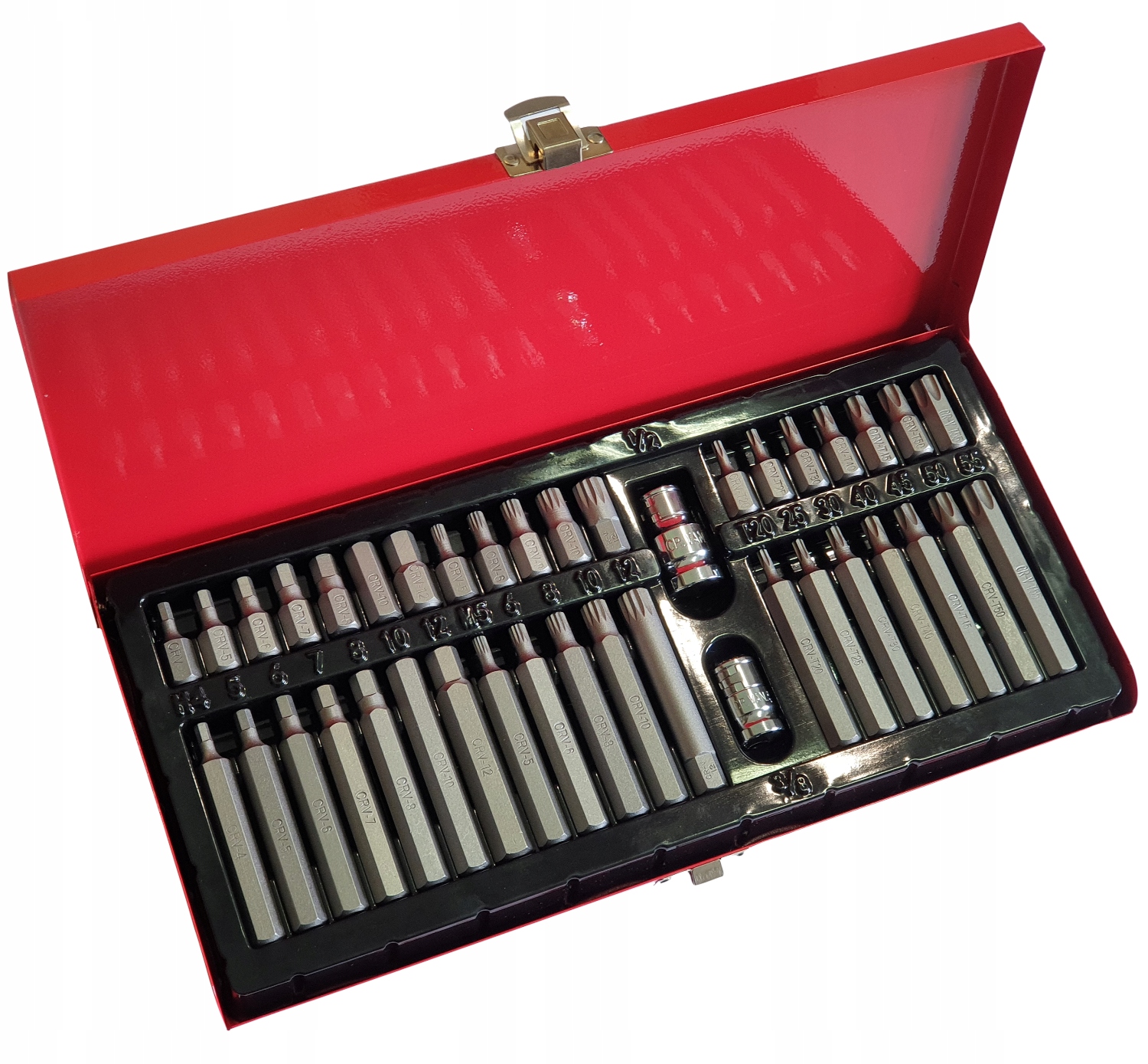 Профессиональный набор бит для откручивания специальных винтов типа шестигранник, торкс, шлицевой. Разнообразие бит позволяет выполнять множество работ в специализированных механических и автосервисах. Наконечники имеют две длины: 30 и 75 мм, закреплены в шестигранном держателе диаметром 10 мм, приспособленном для работы с трещотками 1/2" и 3/8". Набор изготовлен из легированной инструментальной стали CrV высочайшего качества, которая характеризуется: