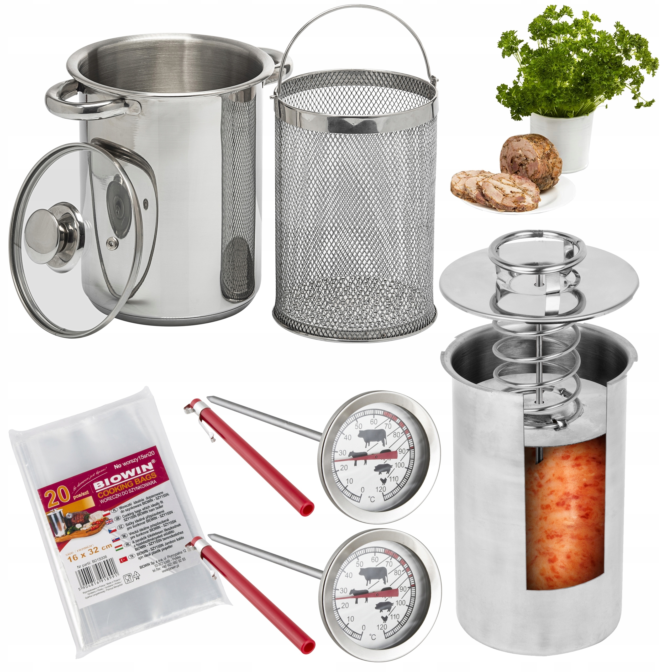 НАБОР ВЕТЧОНКИ НА 1,5 КГ, 2 ТЕРМОМЕТРА, МЕШКИ + КАСТРЮЛЯ С КОРЗИНОЙ BIOWIN 313515