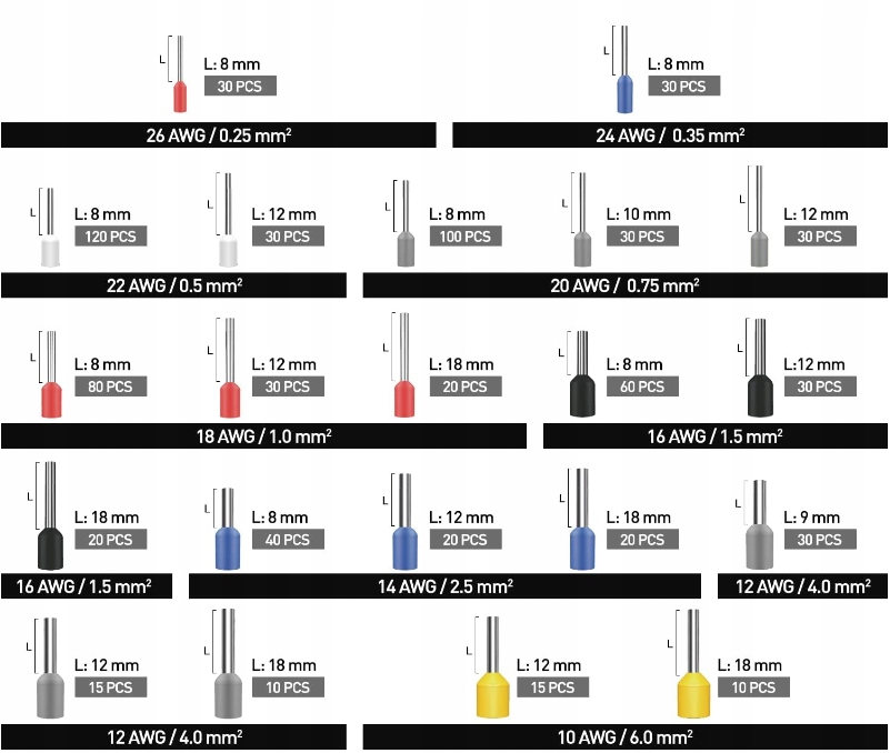 ✅ РАБОЧИЙ ДИАПАЗОН: 0,25-6 ММ - Комплект кабельных гильз охватывает широкий рабочий диапазон от 0,25 мм до 6 мм, поэтому их можно использовать для различных задач, связанных с электрическими кабелями. р>