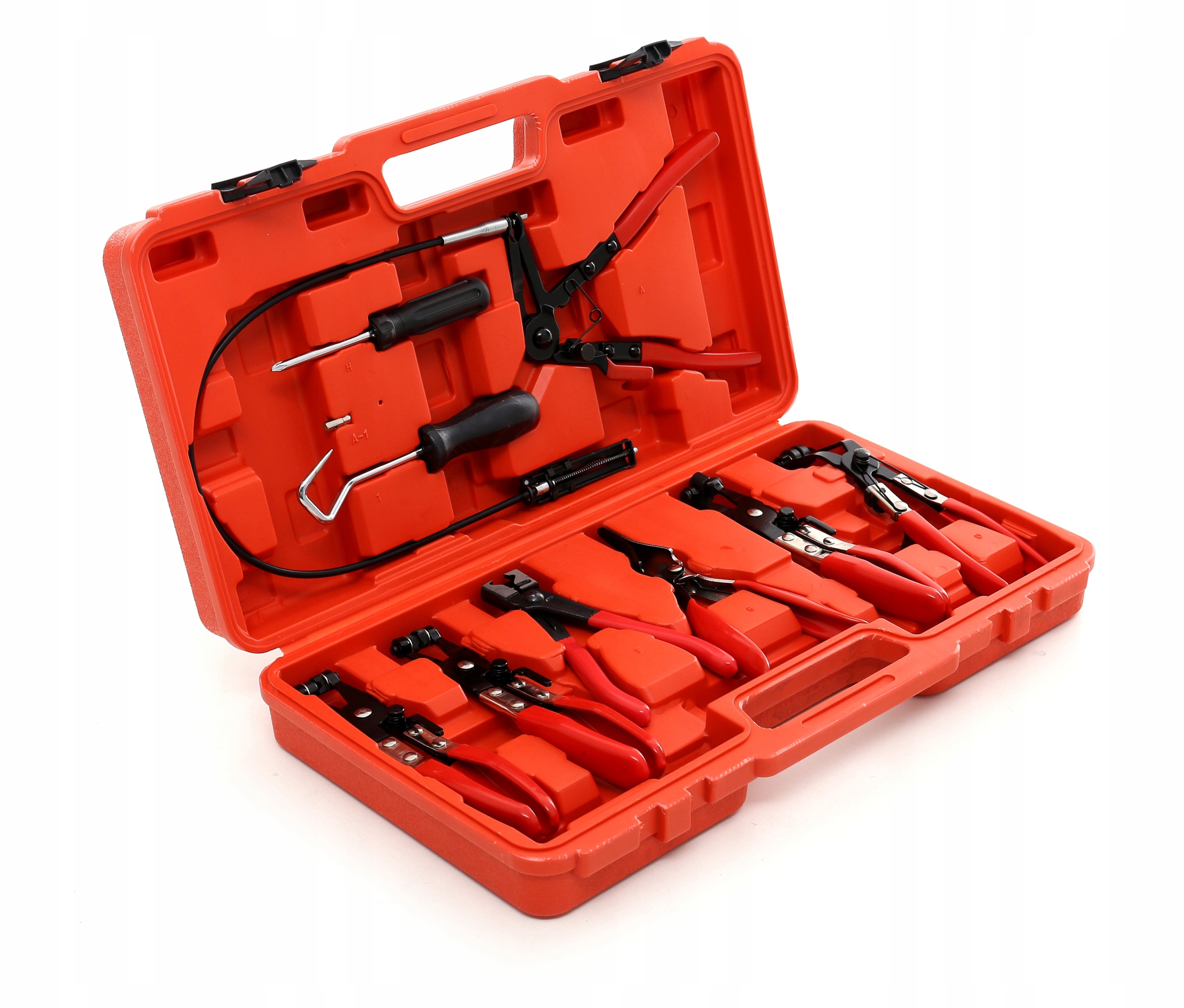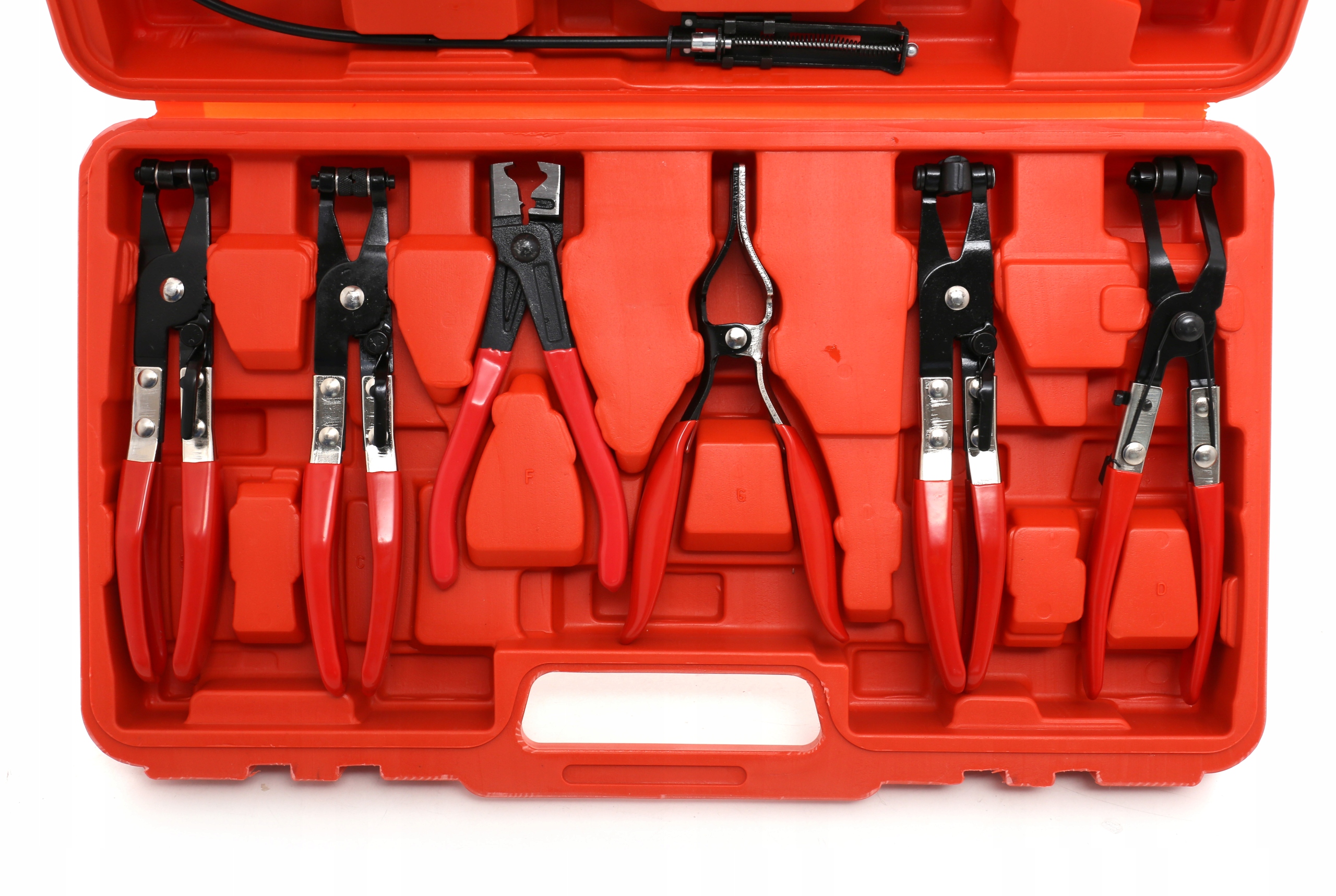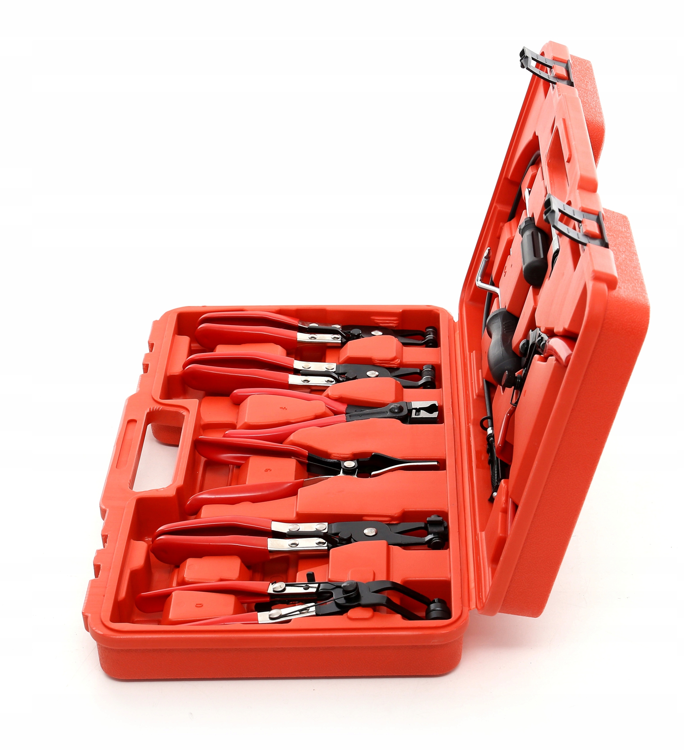 • Узкие изогнутые клещи для хомутов