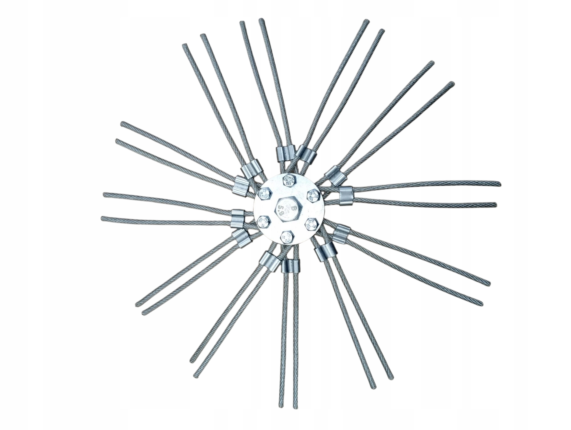 Сляная головка из 24 ПК стальных канатов с чистящей ПВХ - кирпичный труб, сталь и керамика с диаметром Fi 200 (адаптируется к размеру дымохода от 125 до 200 мм)