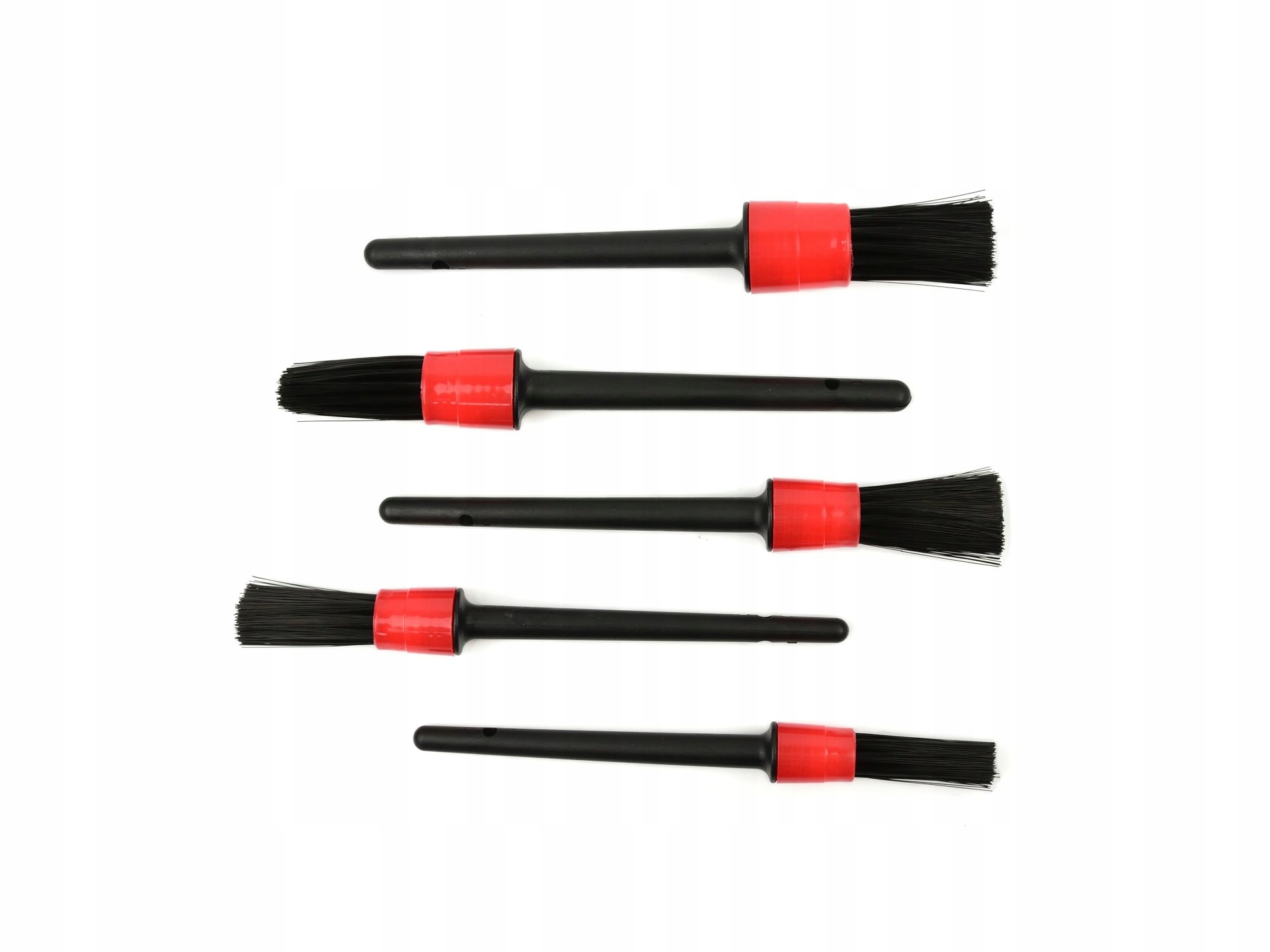 Набор из 5 чистящих щеток разных размеров. Они идеально подходят для очистки деликатных поверхностей в кабине и элементов кузова. Идеальный инструмент для чистки деталей, углов и труднодоступных мест. Кисти изготовлены из мягкой нейлоновой щетины. Пластиковая ручка имеет отверстие для подвешивания.