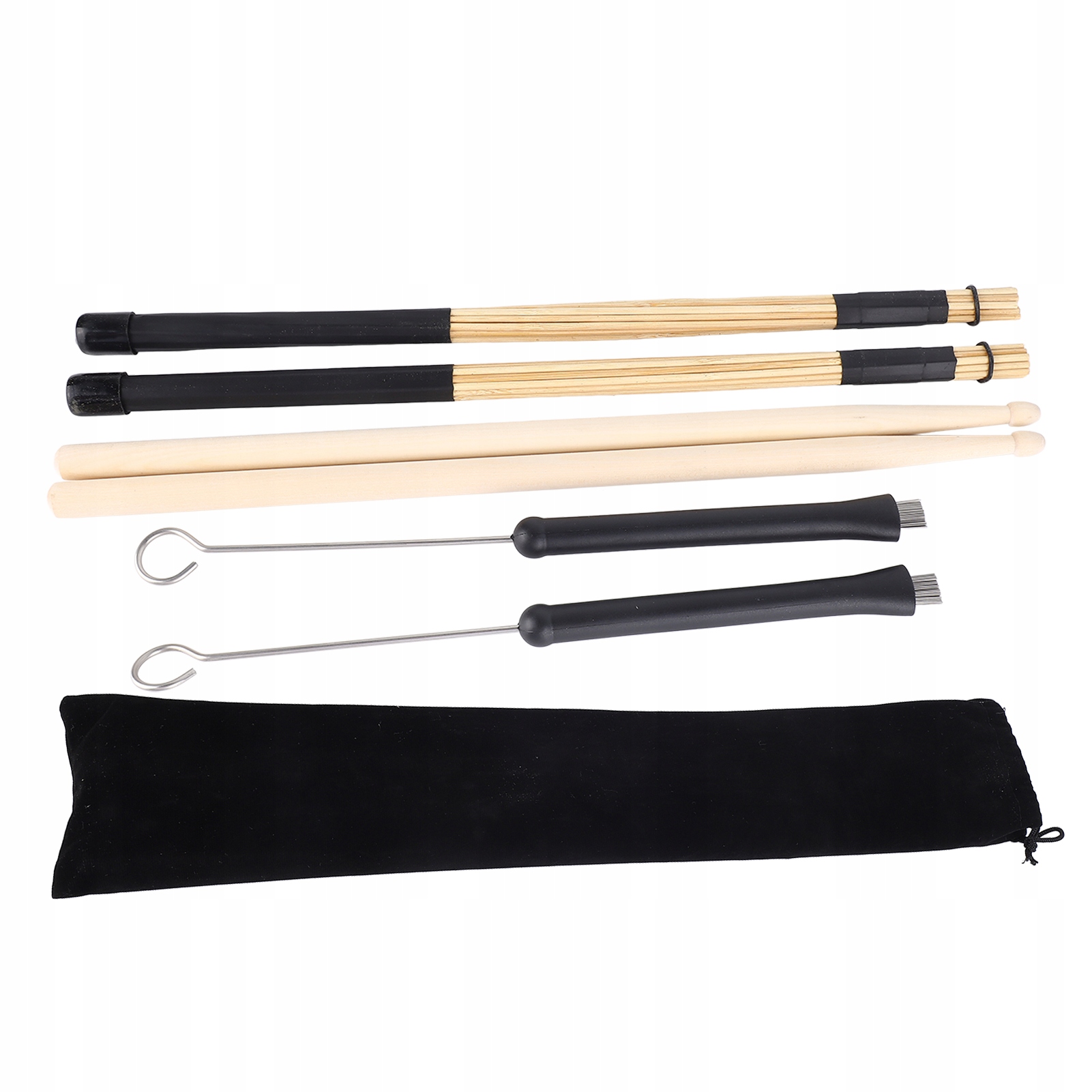 1. НАБОР БАРАБАННОЙ ЩЕТКИ: В этот набор входит 1 пара часто используемых барабанных палочек, проволочных щеток и щеток для барабанов.