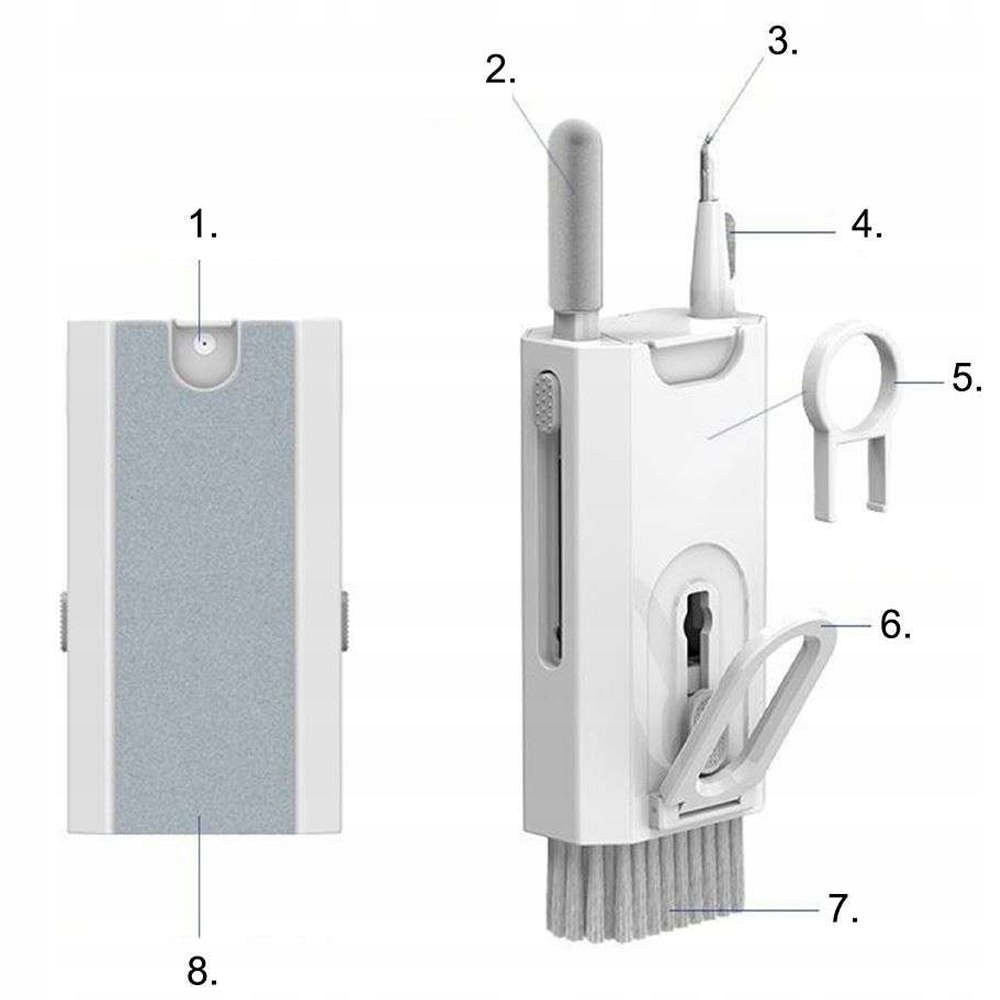 Многофункциональный очиститель Alogy Cleaner Set 8-в-1, набор для чистки экрана клавиатуры наушников для телефонов, планшетов, ноутбуков, компьютеров, который прекрасно удалит всю внешнюю грязь, пыль и жирные следы.