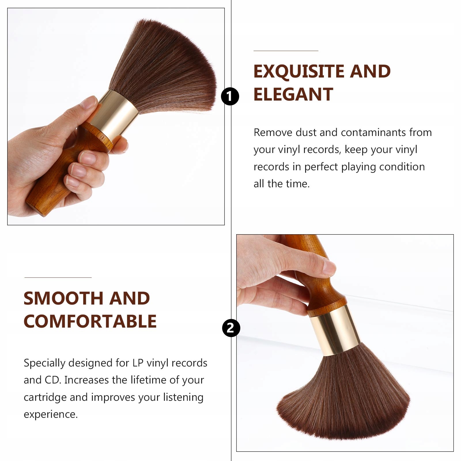 ✅ Эта щетка для чистки была специально разработана для виниловых пластинок и компакт-дисков. Увеличивает долговечность и улучшает качество прослушивания.