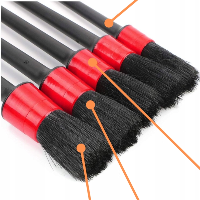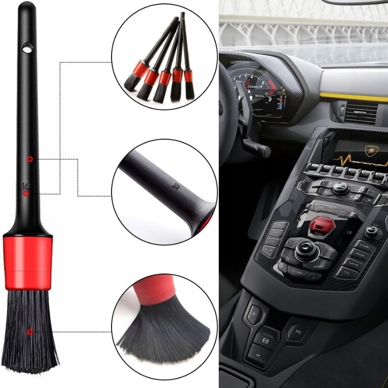 Кисти для детейлинга в нашем наборе имеют натурально-синтетический состав. идеально чистая щетина справляется с очисткой труднодоступных мест. Пластиковый колпачок защищает очищаемые поверхности от царапин, а удобная ручка обеспечивает надежный захват, обеспечивая точную и комфортную работу. Это идеальный инструмент для ухода за каждым уголком вашего автомобиля.