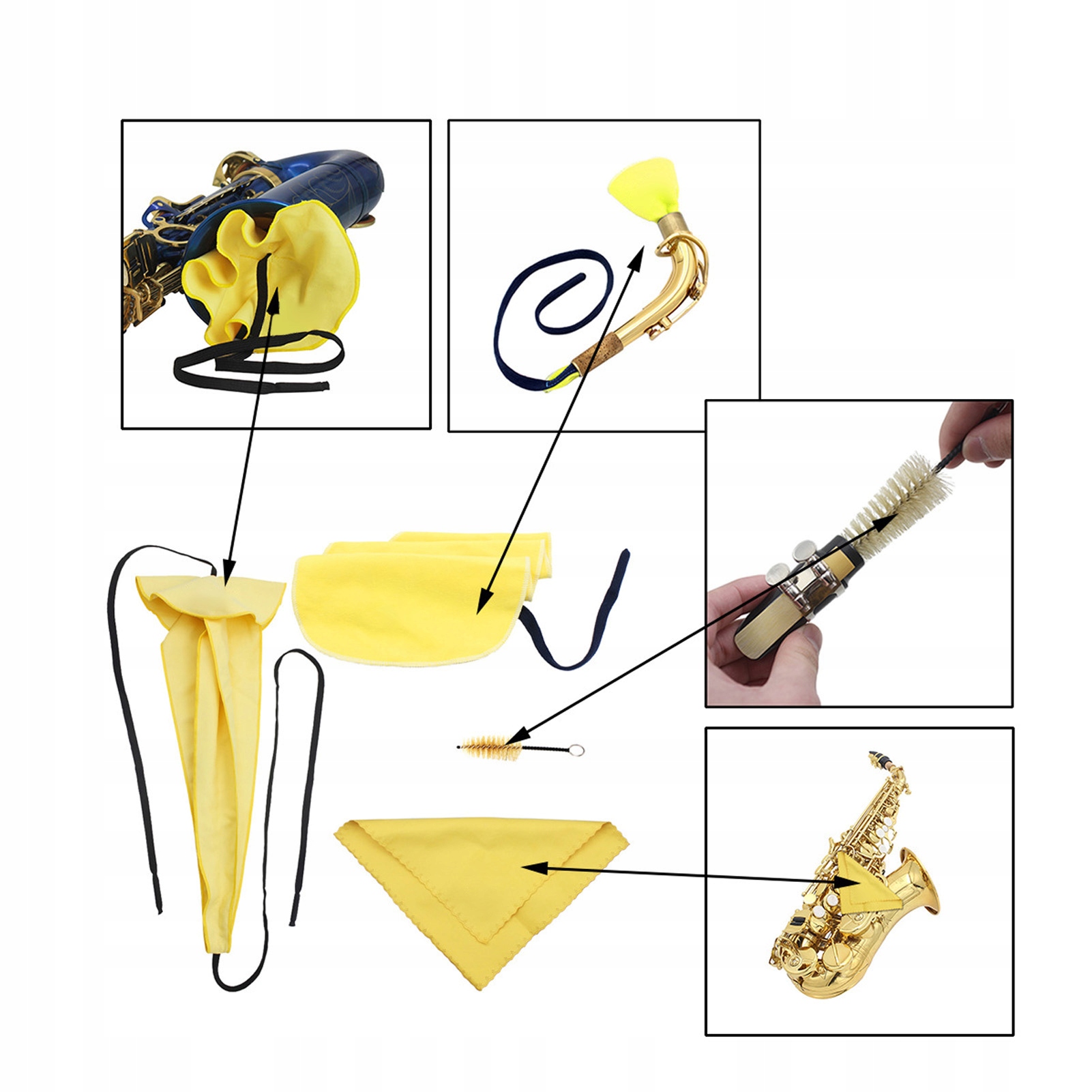 1. Комплексная очистка: в комплект для чистки саксофона входят различные чистящие инструменты, позволяющие полностью очистить саксофон, гарантируя, что ваш инструмент останется чистым и гигиеничным.