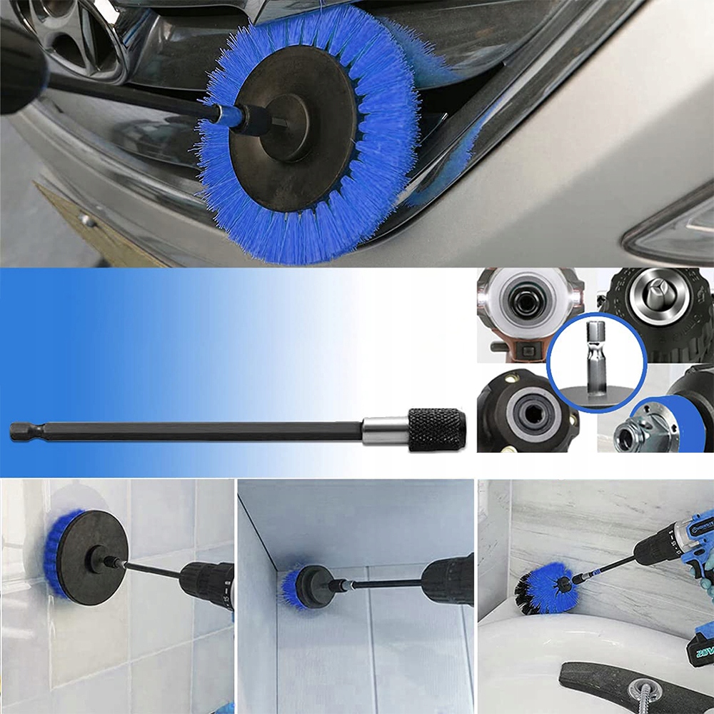 Наши щетки-сверла доступны в 5 размерах: маленькая кисть 2 дюйма, кисть 3,5 дюйма, кисть 4 дюйма, кисть 4, 7. дюймовая и 5,5-дюймовая щетка. От плоских поверхностей до углов, которые сложно очистить, модели разных размеров позволяют очистить все деликатные участки. Предлагаем удлинители для уборки узких углов.