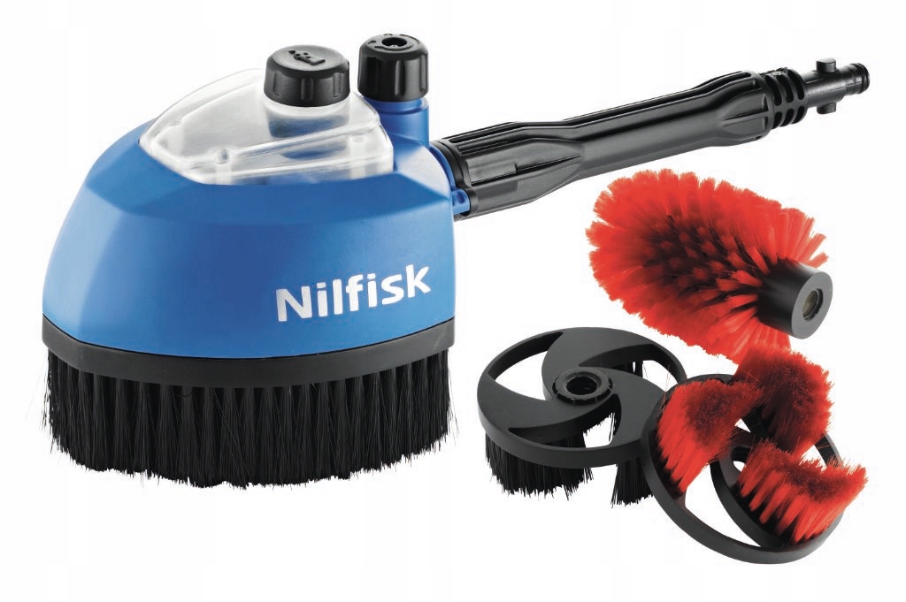Многофункциональная щетка для моек высокого давления Nilfisk серии Compact, которая облегчит как мойку автомобиля, так и уборку дома или сада. Модель оснащена 3 сменными вращающимися насадками, предназначенными для мытья автомобилей, дисков и работ по дому, например, мытья гаражных ворот, деревянного забора или садовой мебели.