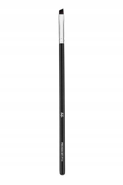 Классическая скошенная кисть со слегка удлиненным, гибким и в то же время достаточно жестким ворсом. Возможность нанесения крема и сыпучих продуктов. Идеально подходит для классических линий и подчеркивания бровей.