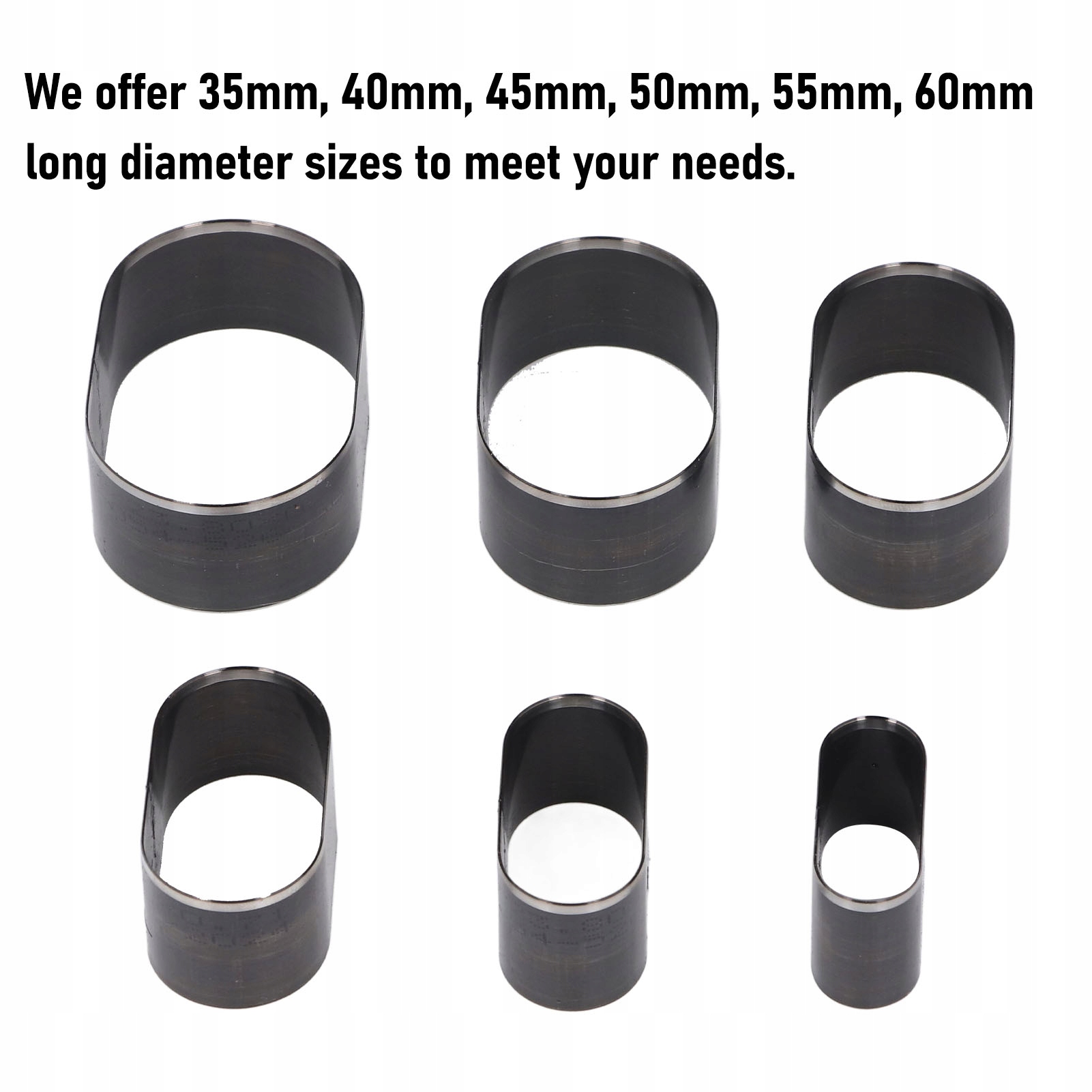 5, доступны 6 размеров: Чтобы удовлетворить различные потребности в изготовлении, наши штампы для вырубки кожи выпускаются различных размеров: 35 мм, 40 мм, 45 мм, 50 мм, 55 мм и 60 мм в диаметре. Такое разнообразие позволяет вам выбрать размер, соответствующий вашим конкретным требованиям проекта, что повышает универсальность и творческий подход к вашим изделиям из кожи.