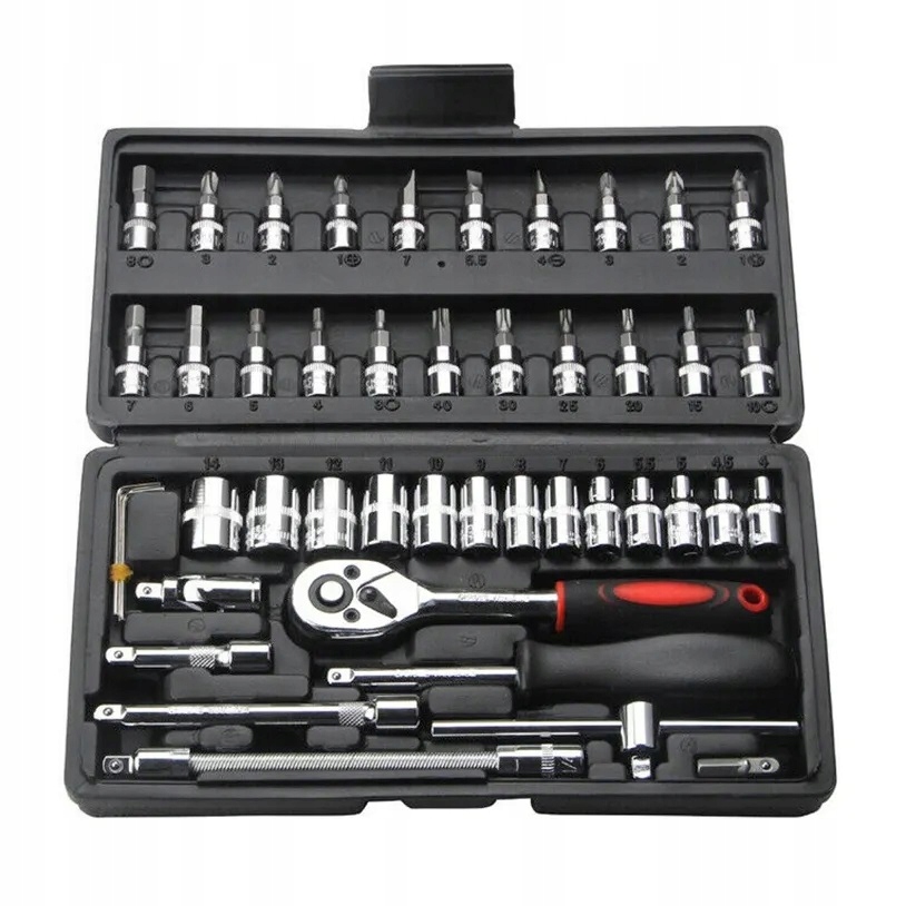 Элементы отсортированы в практическом маленьком чемодане. Набор отлично подходит как для профессионального, так и для любительского использования. Профессиональное производство и закаленная хромированная стальная сталь CR-V обеспечит ее прочность и долговечность. Все размеры ключей были отмечены для удобства DIY