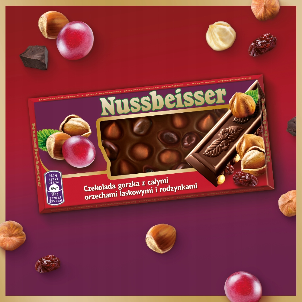- Темный шоколад Nussbeisser с цельными орехами и изюмом 100 г x2