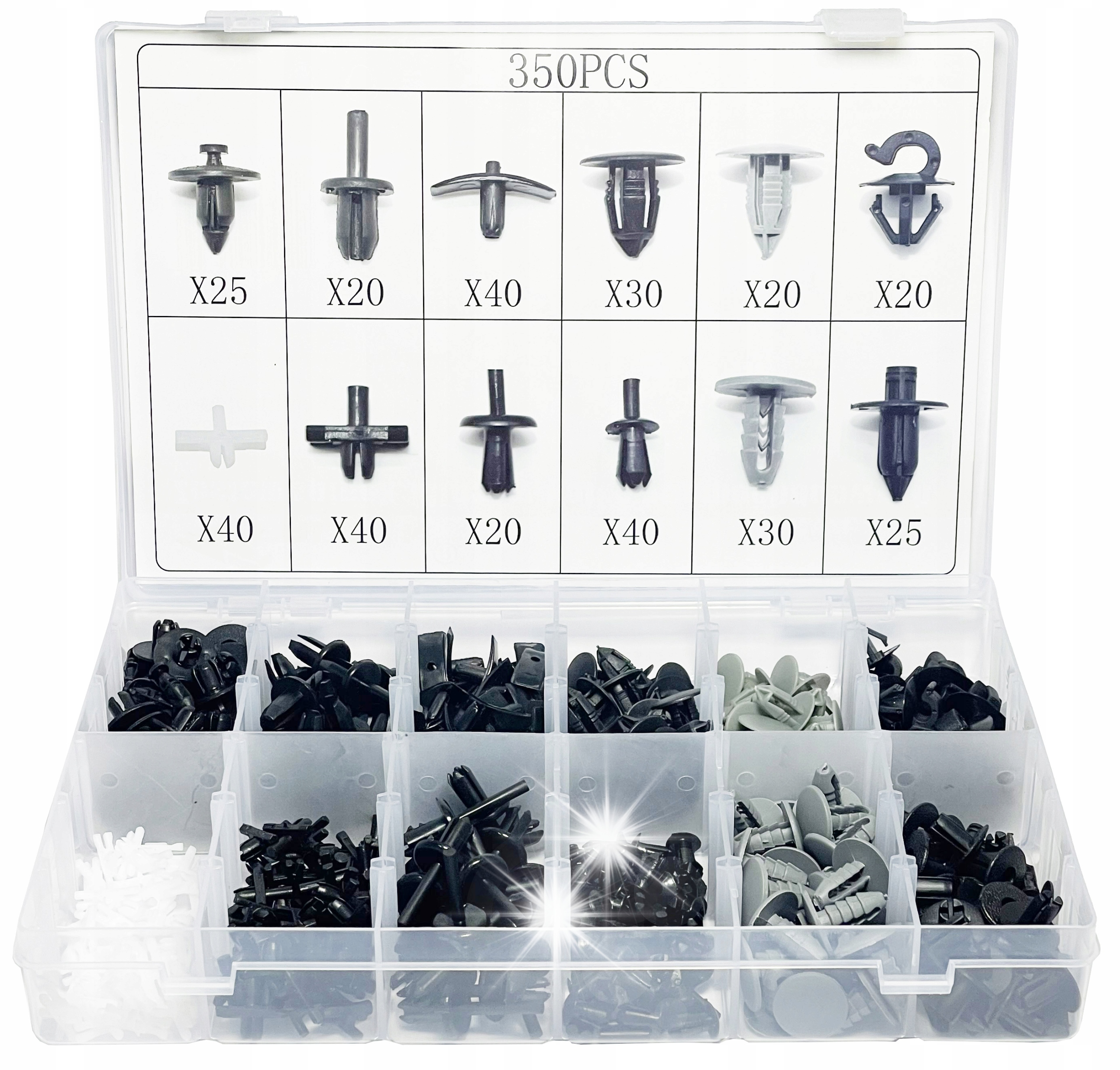 НАБОР ШПИЛЬКОВ И ЗАЖИМОВ ДЛЯ ОБИВКИ 350 ШТ. VOLVO 18 РАЗМЕРОВ