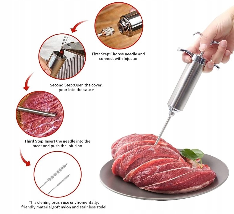 - 【100% безопасные и полезные для здоровья кухонные инструменты/инструменты для гриля】: Все аксессуары соответствуют стандарту FDA: шприцы из нержавеющей стали 304, игла, ручка и инжектор, верхняя часть из цинкового сплава, для использования в процессе. безопасен и здоров, безвреден для организма человека