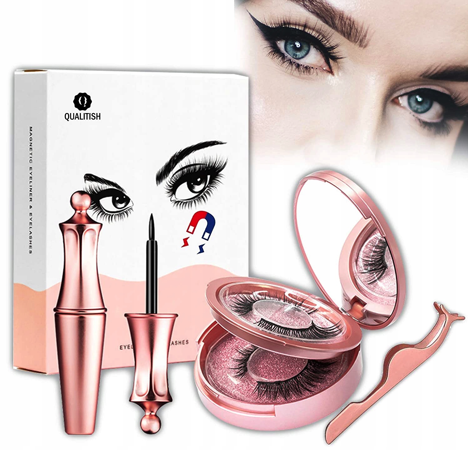 Ресницы изготовлены из волокна класса А ручной работы, чрезвычайно мягкого и длинного. Подводка для глаз долговечна, устойчива к размазыванию и водонепроницаема. Специально разработанный аппликатор из сплава для магнитных ресниц делает ихочень удобными в ношении.