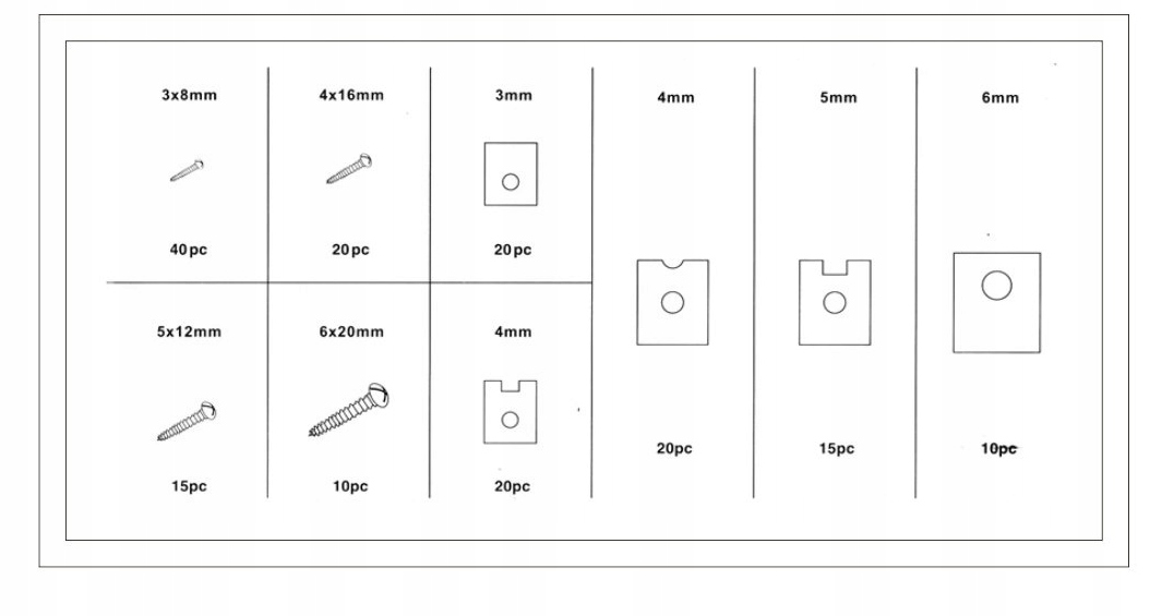 Набор винтов и шайб для кузовных работ, 170 шт.