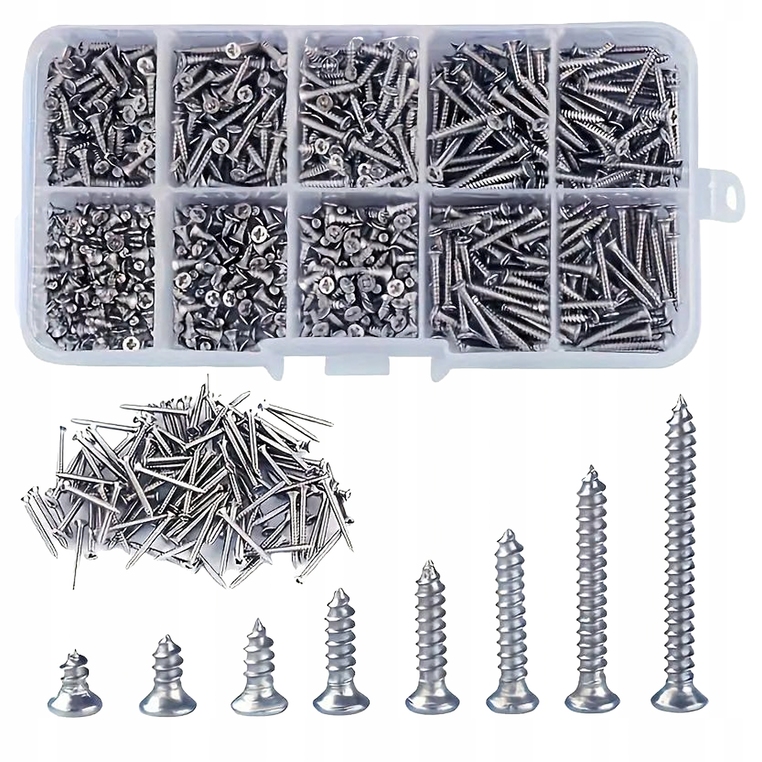 НАБОР ВИНТОВ УНИВЕРСАЛЬНЫЕ ВИНТЫ ДЛЯ ДЕРЕВА М2 СТАЛЬ НАБОР 800 ШТ.