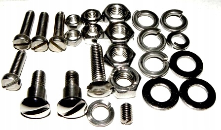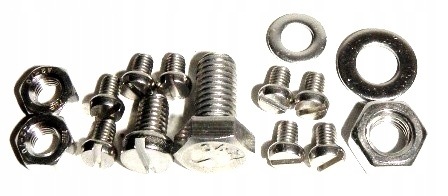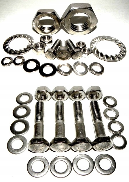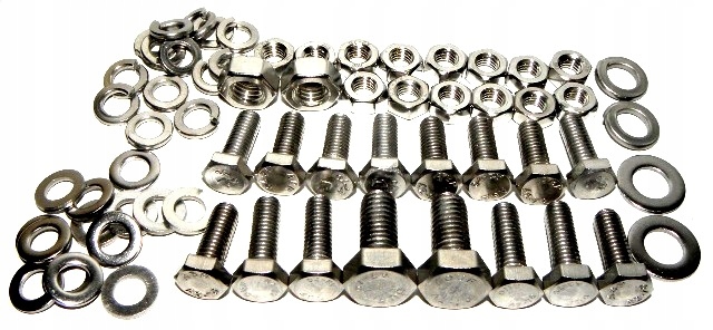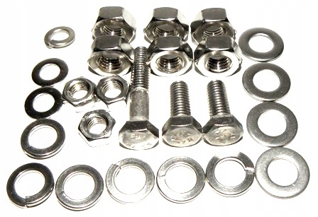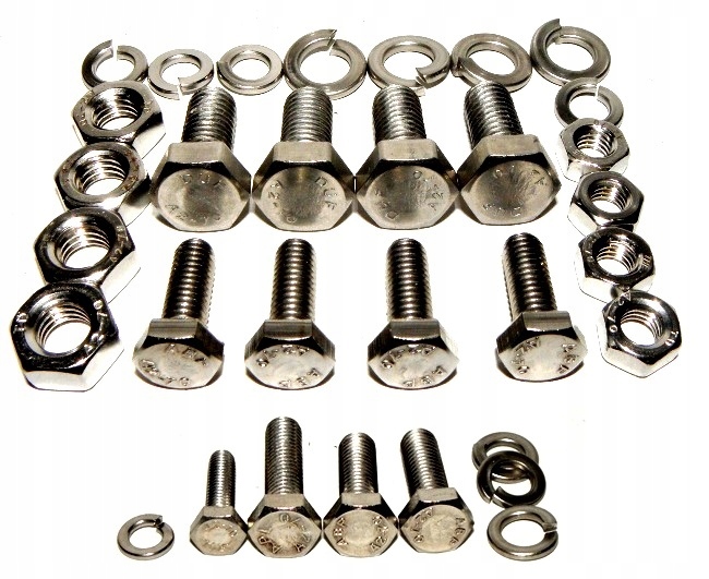 Комплект состоит из хромоникелевых элементов из нержавеющей стали, выполненных в классе А2. В комплект входят болты, винты, гайки и шайбы, разделенные таким образом, чтобы обеспечить беспроблемную сборку отдельных компонентов мотоцикла.