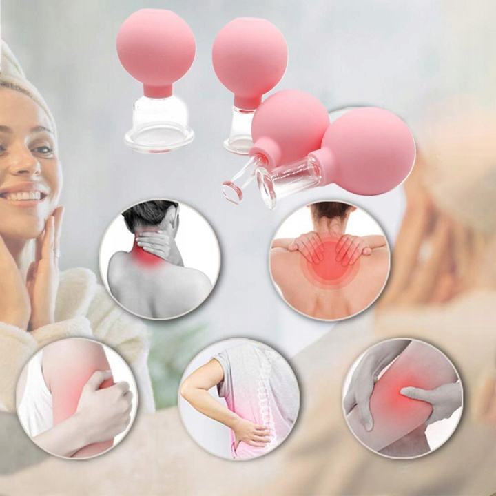 Китайские силиконовые беспламенные чашки для массажа лица и тела, набор из 4 штук.