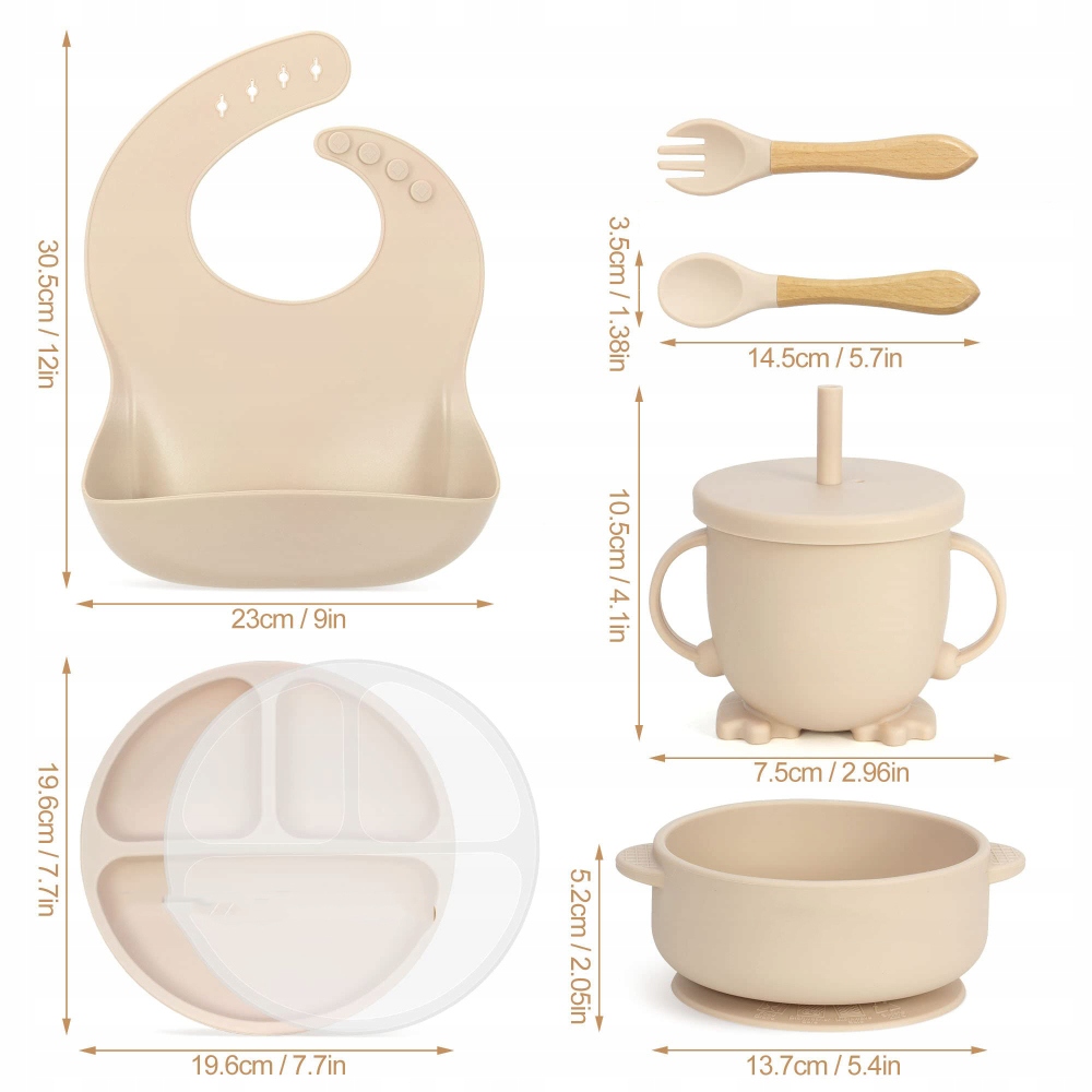✨ 【Удобная для ребенка переноска】: Деревянные ручки для переноски и вилки удобны и эргономичной формы, что более функционально, чем полностью силиконовые ручки, их удобно держать маленькими ручками, что делает детей обслуживаются. Силиконовые насадки широкие и глубокие, круглые, мягкие и глубокие, они не причинят вреда, даже если ребенок положит их в рот.