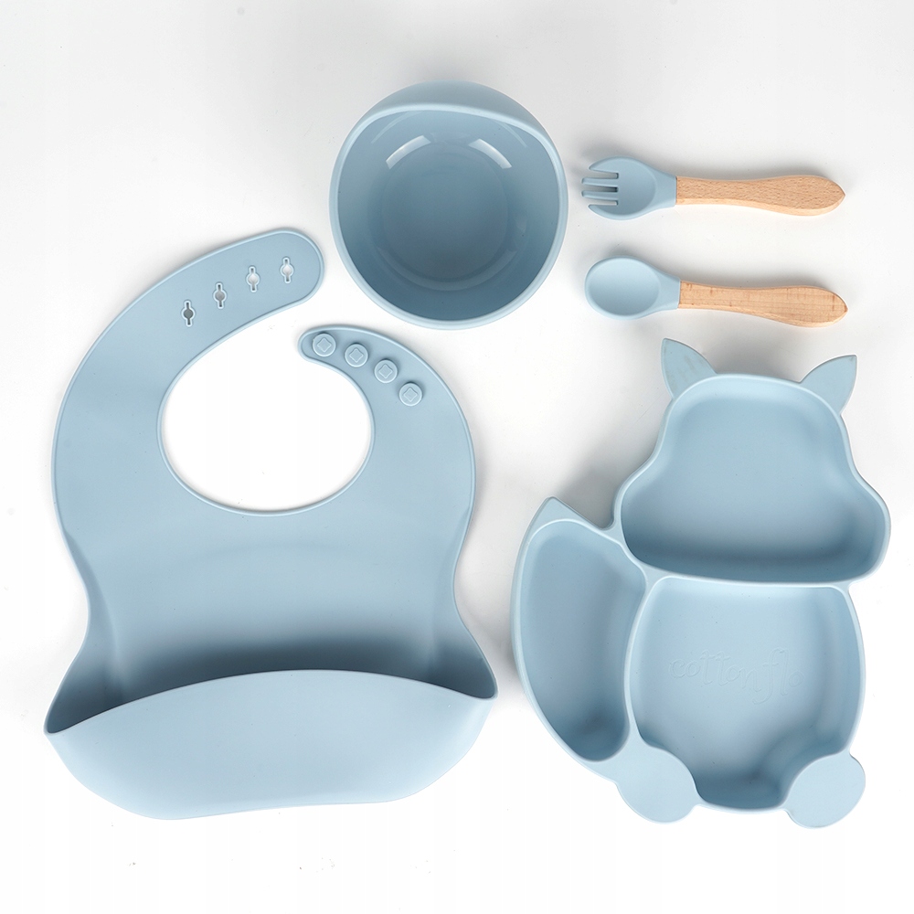 🧸- В комплект входит одна вилка, ложка, нагрудник, тарелка и миска. Каждый элемент изготовлен из высококачественного пищевого силикона и не содержит BPA.