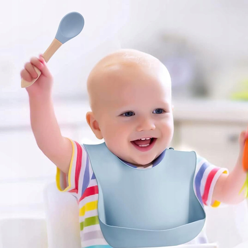🧸-Силиконовый нагрудник с регулируемой кнопкой и большим поддоном для капель останавливает выпадение еды изо рта ребенка и предотвращает ее попадание на пол и одежду.