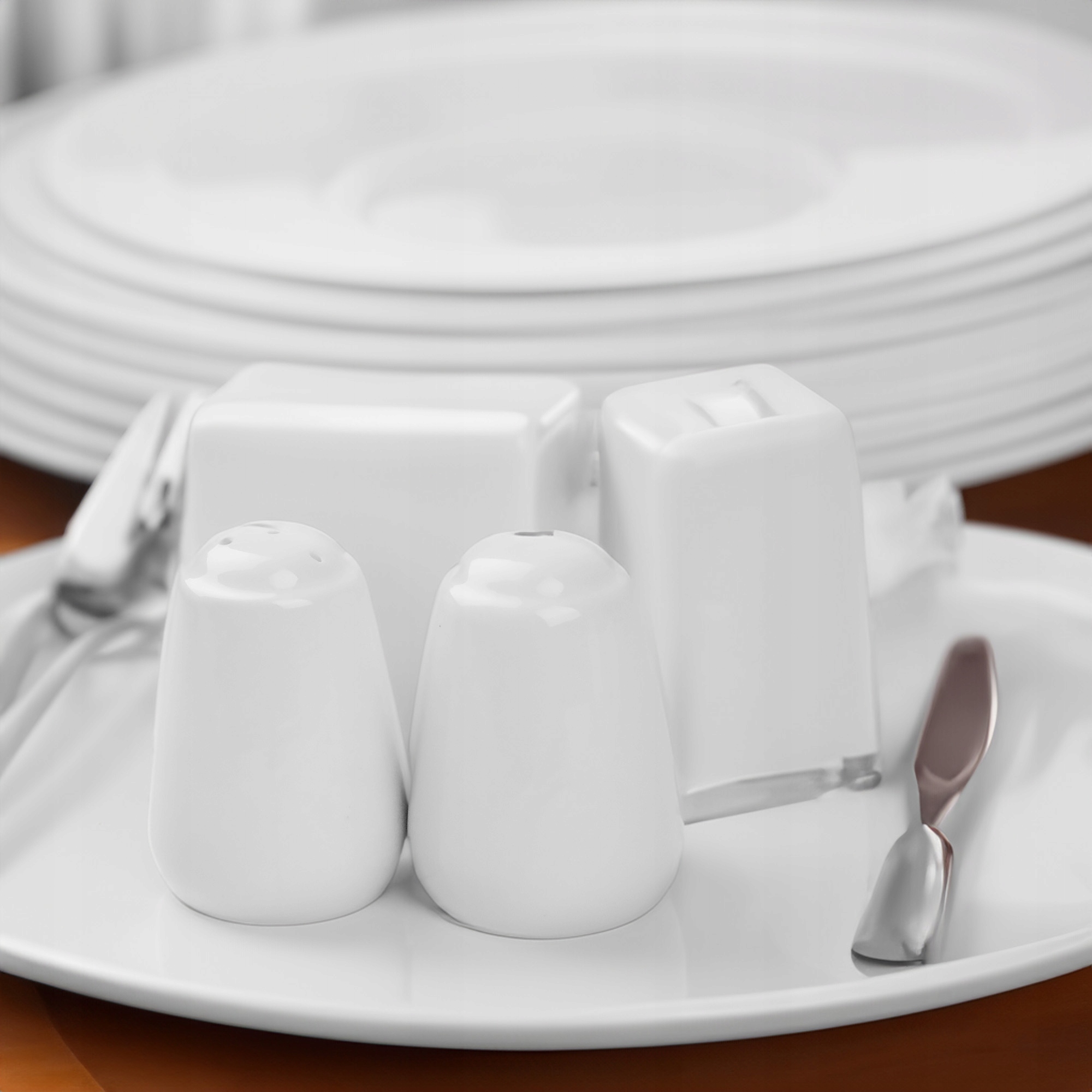 Набор оливково-перечниц из второсортного фарфора. N маленького размера не займет много места на столе. столешница, что делает ее идеальной для любой кухни дома или в ресторане.