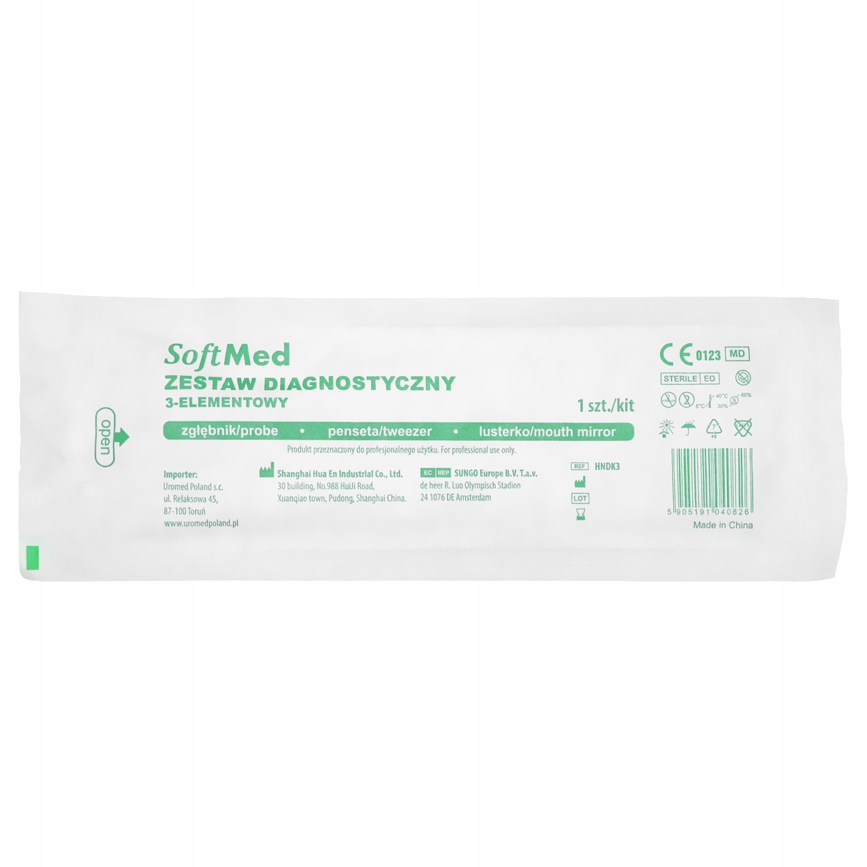 Диагностический одноразовый стоматологический набор. Набор является стерильным и содержит инструменты, необходимые во время диагностики устного состояния пациента. Изготовлен из прочного пластика с металлическими головками.