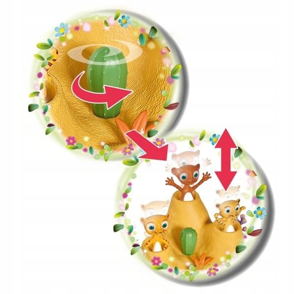 Поместите сурикатов в норки и поверните кактус, чтобы они спрятались в них.