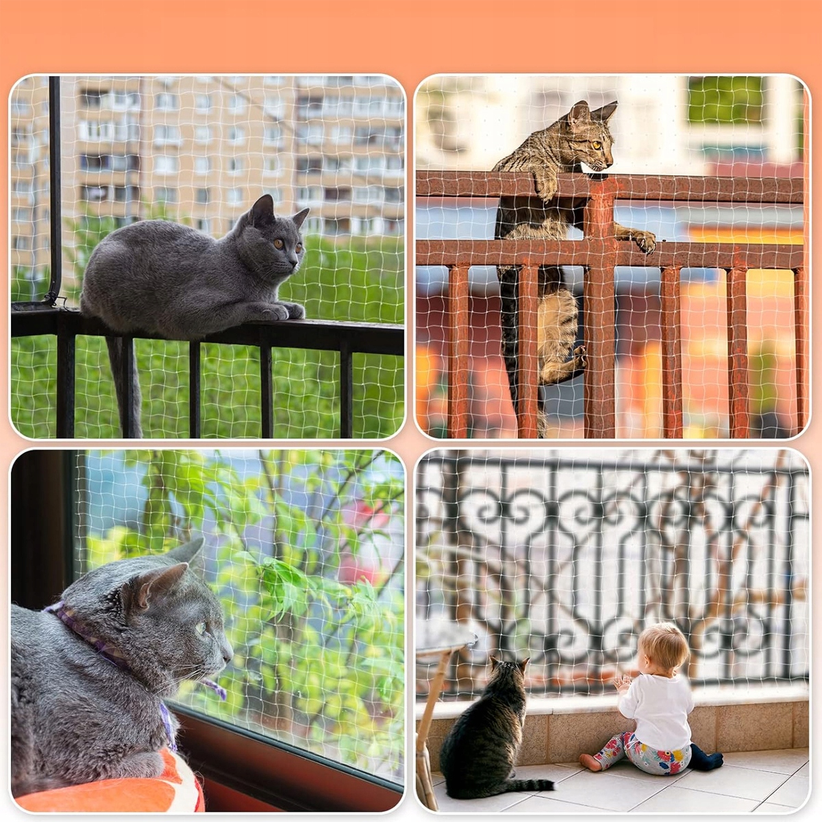 ✔️【Защита домашних животных】Предотвратите падение ваших домашних животных (кошек и маленьких собак) с балкона и с высоты. Обеспечьте безопасность своих питомцев, даже когда вас нет дома. Подходит для использования на внутренних и наружных балконах для защиты домашних животных.