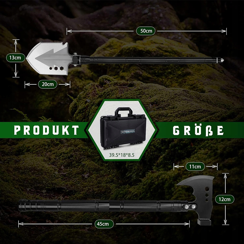 ✅ 【Набор многофункциональных инструментов выживания, таких как «все в одном». В зависимости от роста и условий использования, вы можете настроить складывающуюся лопату выживания до разных длины. Лопата и топор отключены и просты в установке. Набор легкий и легко носить. Подходит для кемпинга, приключений, путешествий на открытом воздухе, полевого вождения, походов и других мероприятий.