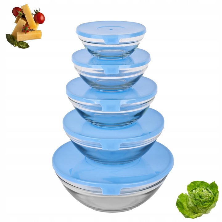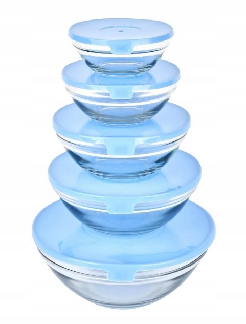 Набор стеклянных кухонных мисок с салатами 5 штук