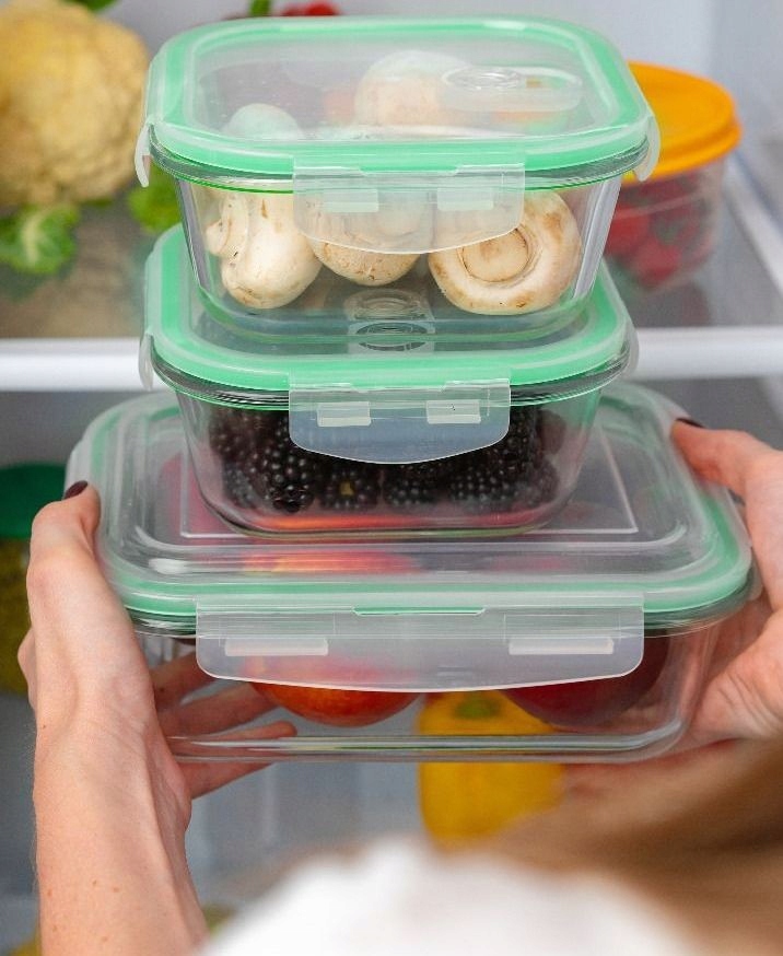 Набор прозрачных стеклянных контейнеров с герметичной крышкой, предназначенных для хранения продуктов питания. Набор полностью изготовлен из высококачественного пластика, устойчивого к температурам от -40 до +400°С. Поэтому мы можем хранить их в морозильной камере, а также разогревать в них еду в микроволновой печи.