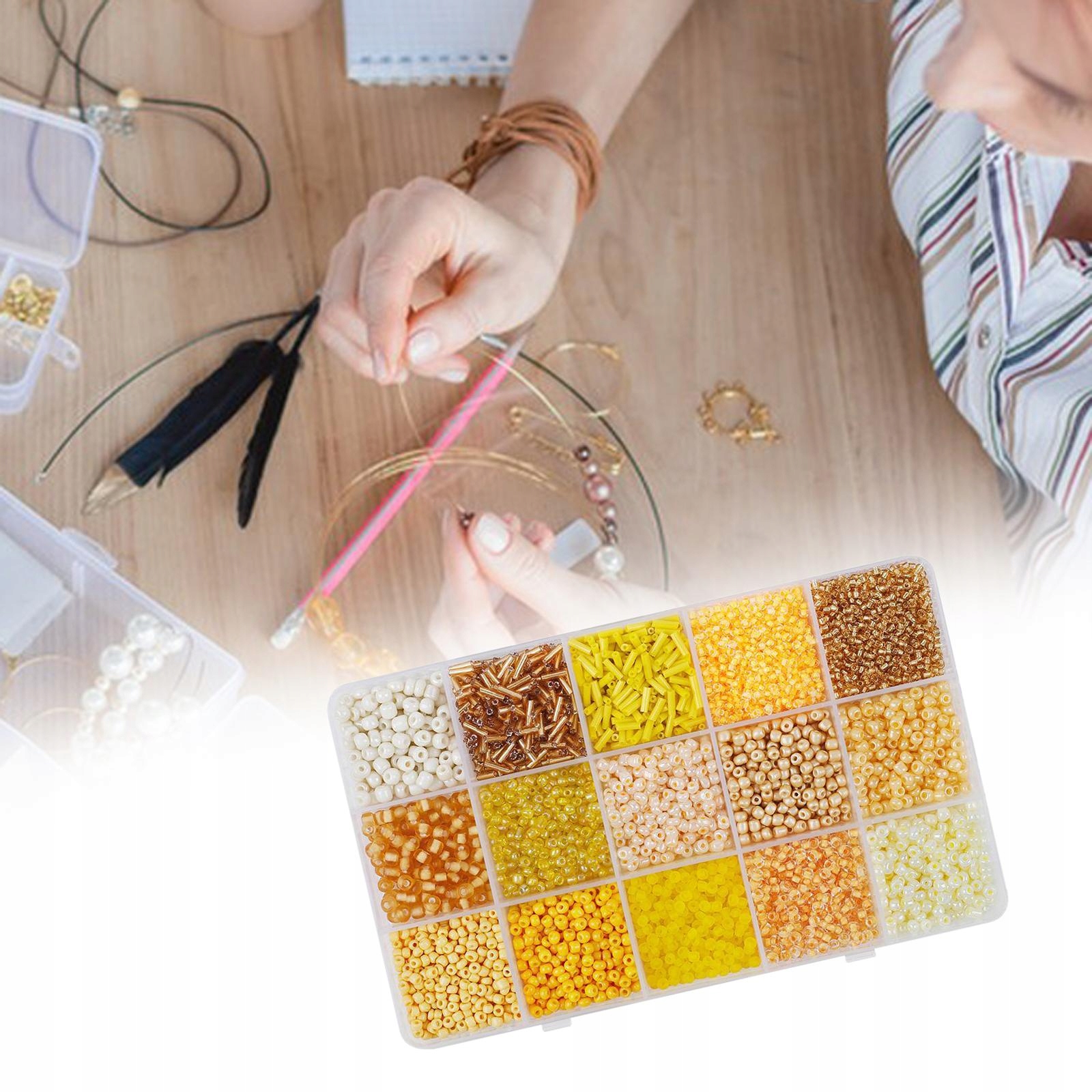 Набор стеклянных бусин для изготовления браслетов с коробкой для хранения свободного желтого