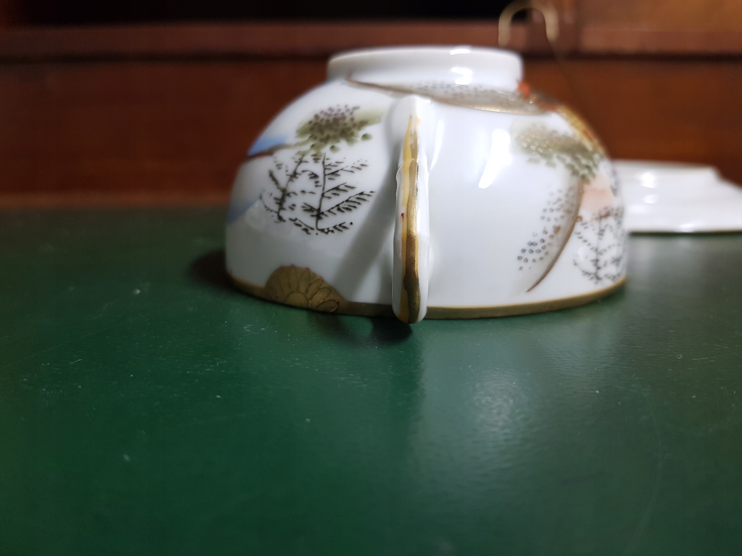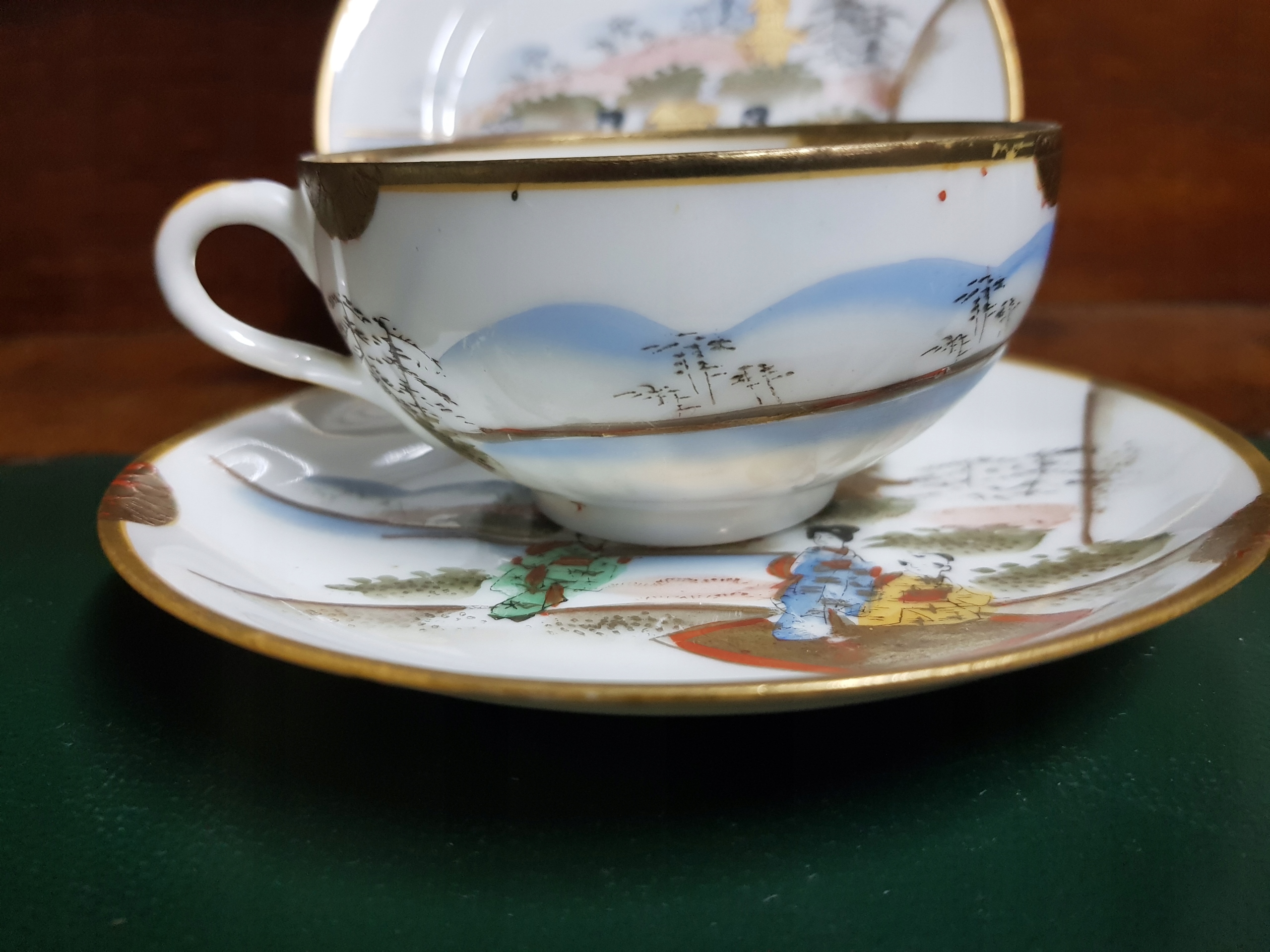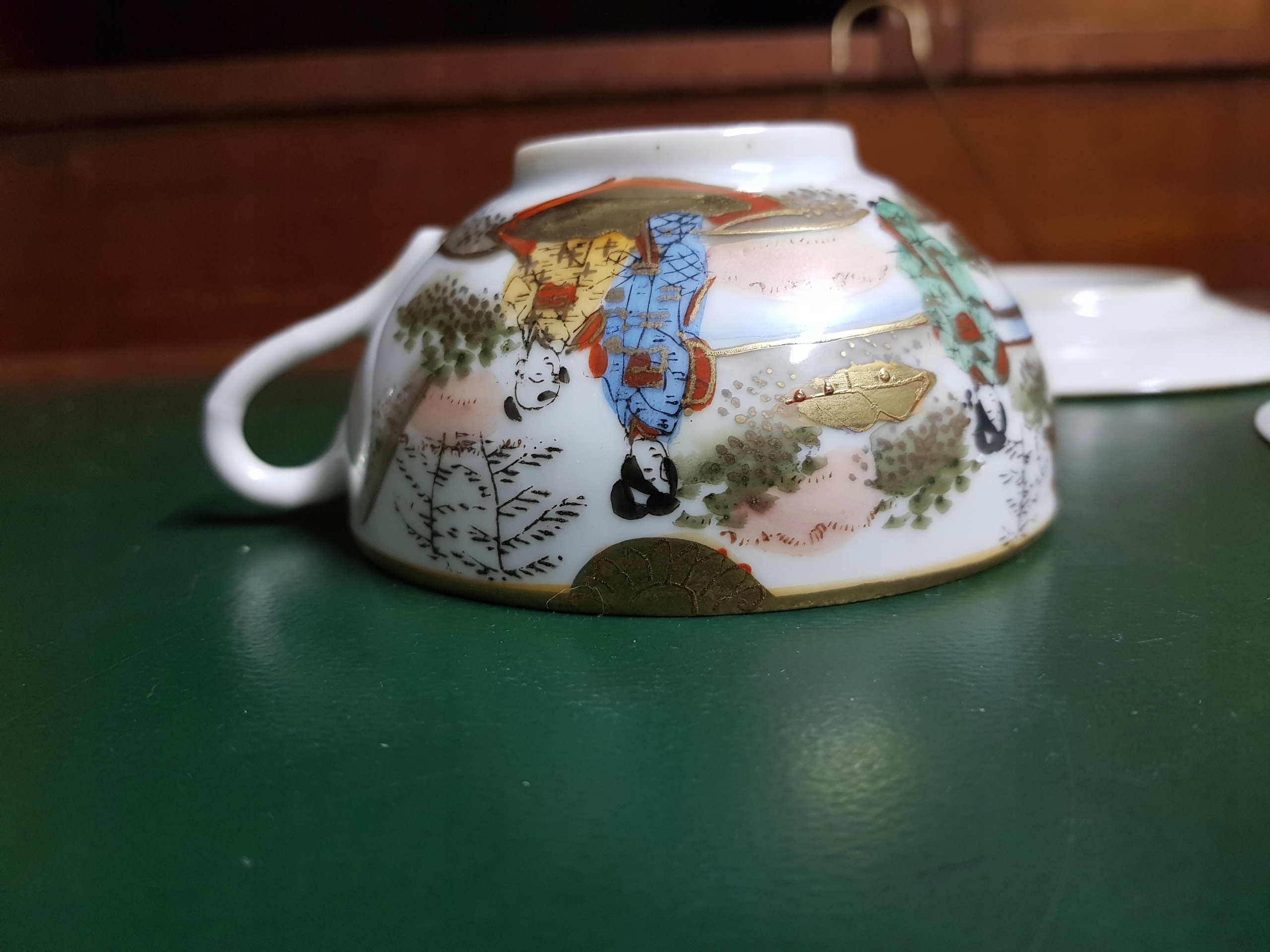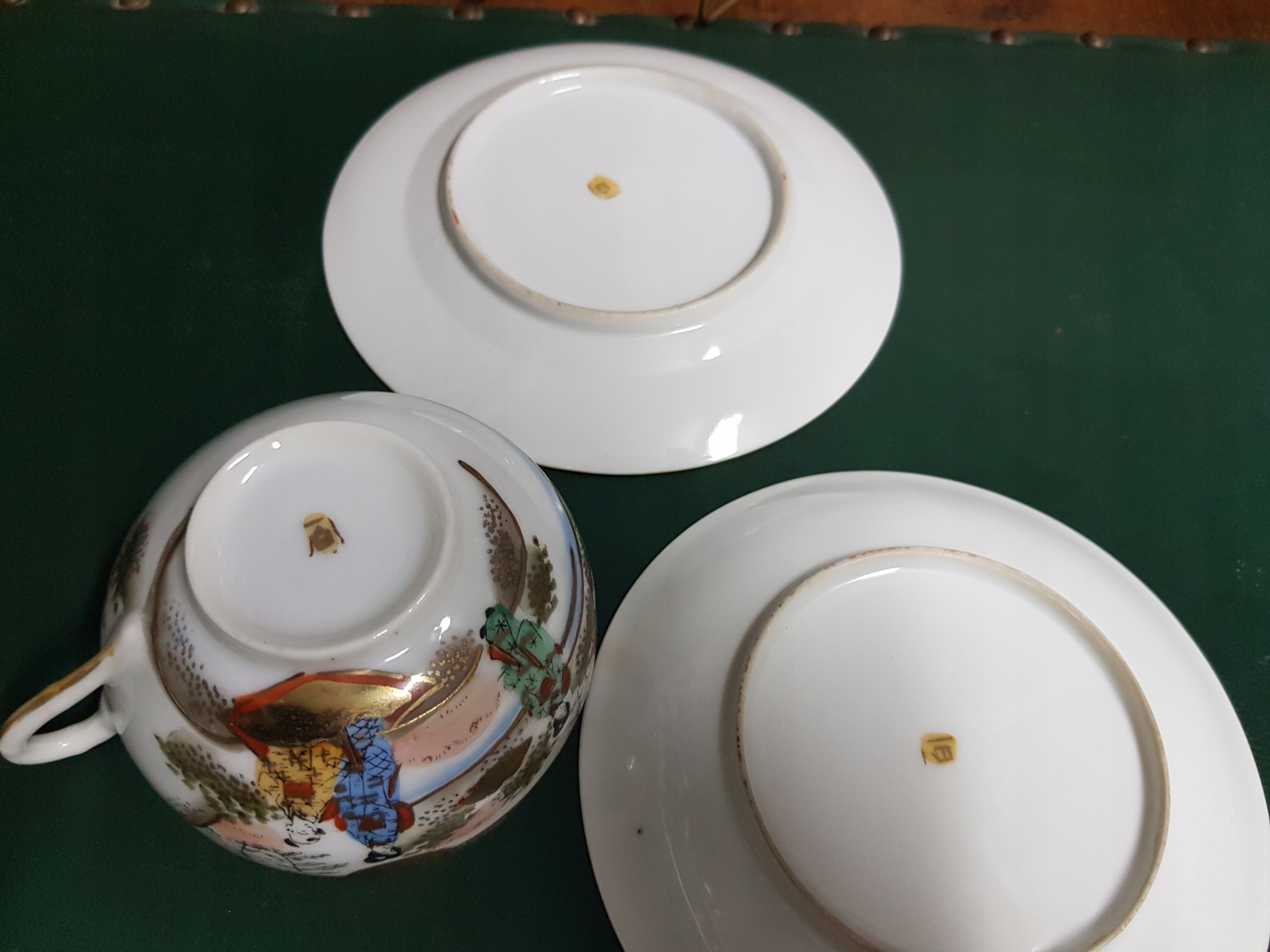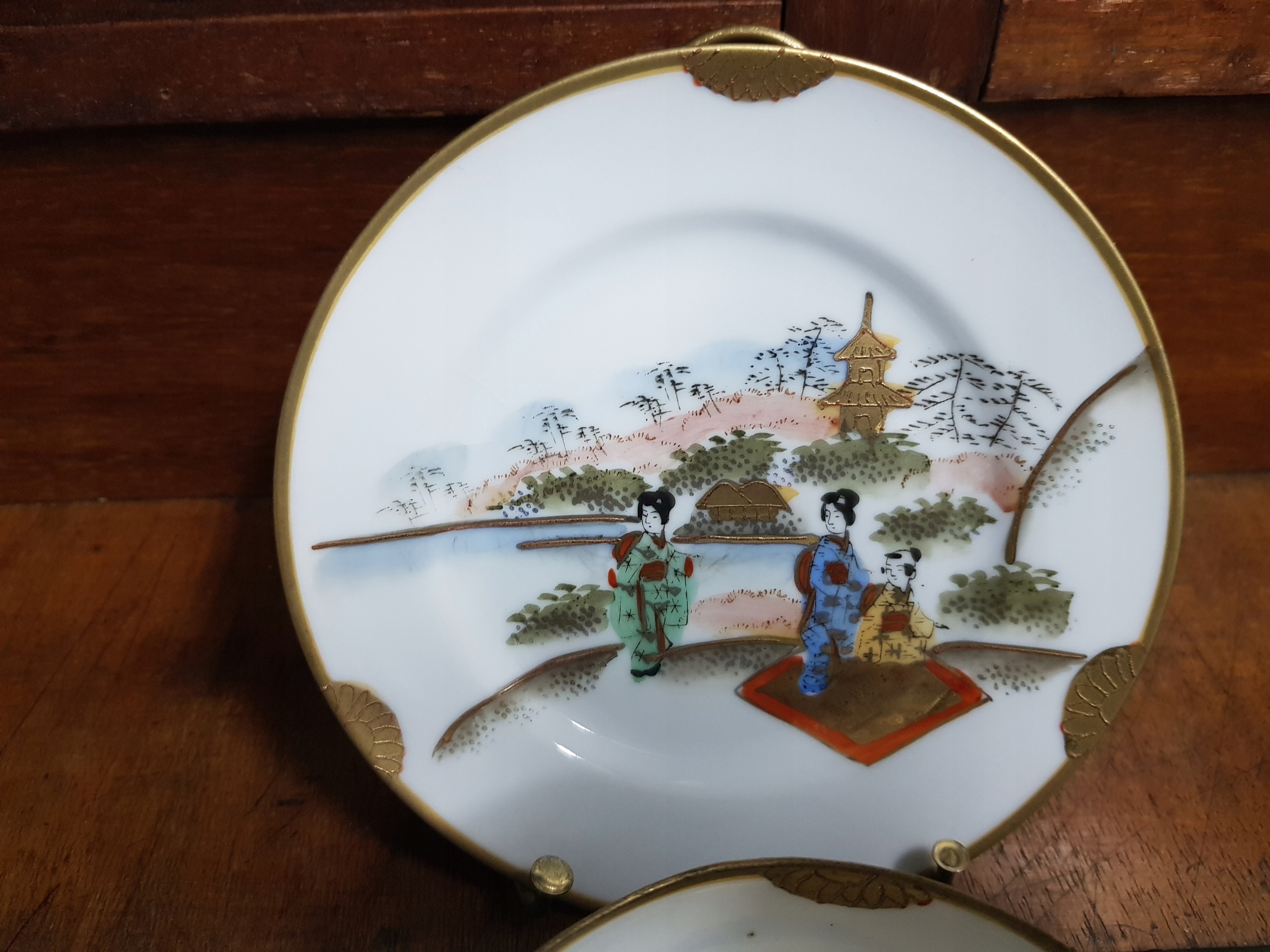 Предмет аукциона — декоративный набор с ручной росписью гейш Японии. Чашки внутри расписаны вручную. Позолота ок.