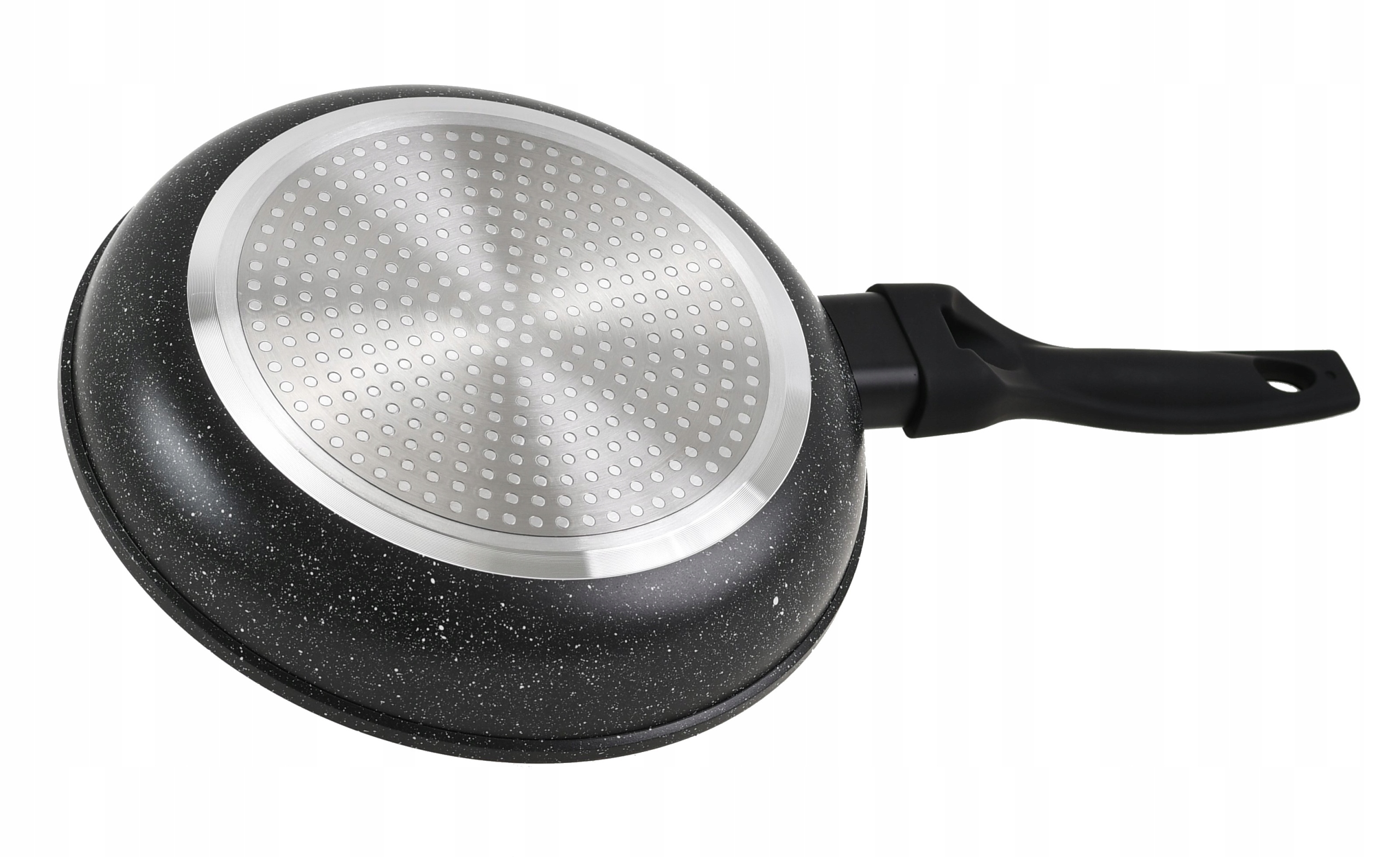 - Сковорода покрыта специальным мраморным покрытием, обладающим антиадгезивными свойствами – оно предотвращает пригорание, устойчиво к истиранию и высокой температуры,