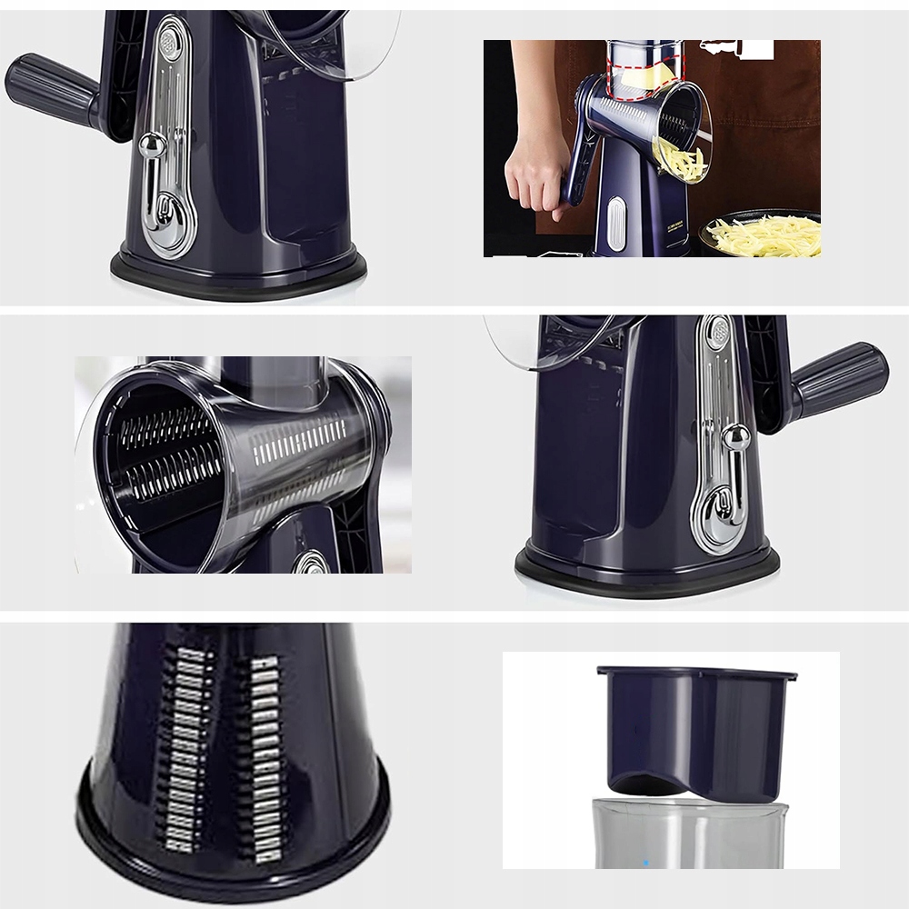 Эта вращающаяся терка для сыра с ручкой, изготовленная из лезвий из нержавеющей стали и пищевых материалов, прочна и незаменима на любой кухне, сочетая в себе функциональность и элегантный дизайн.