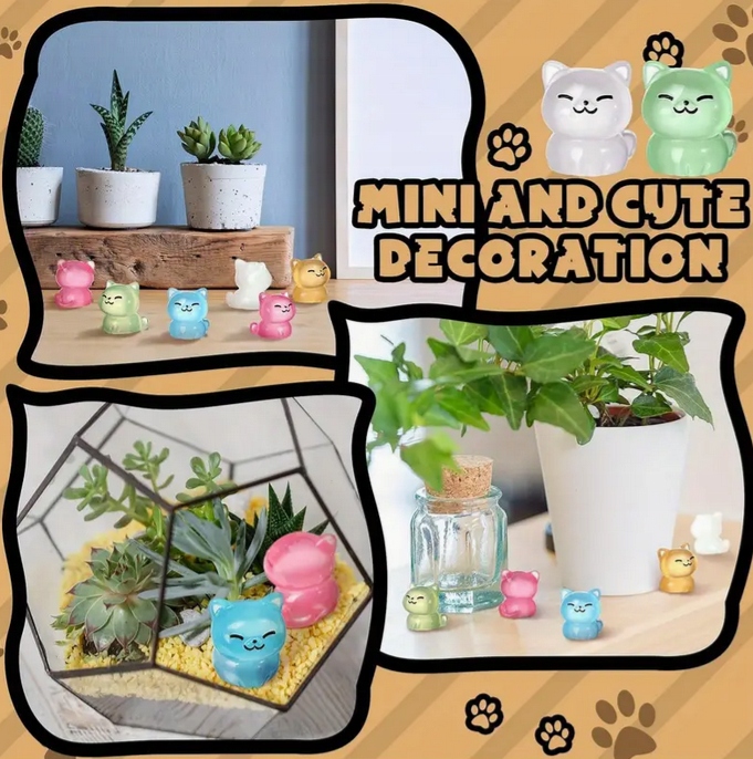 Набір смоляних фігурок 5 різнокольорових котів, які світяться в темряві