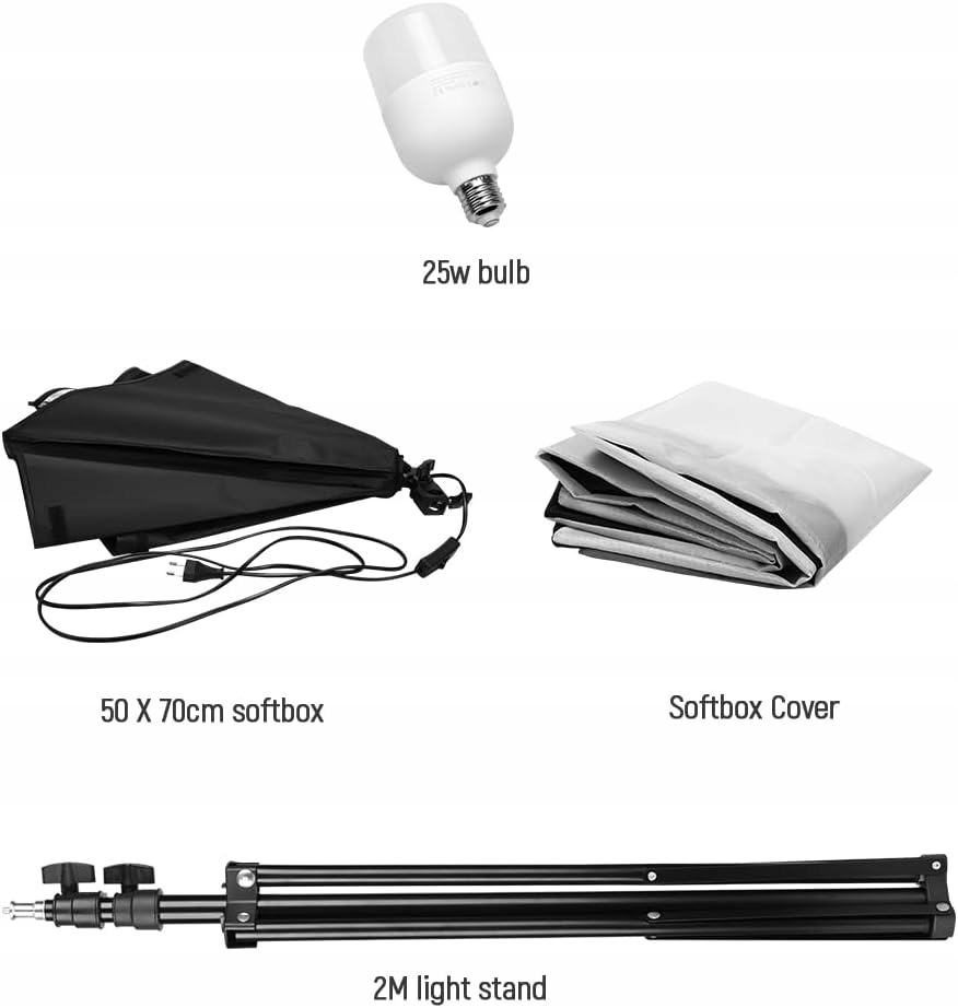Энергосберегающая и долговечная светодиодная лампа с яркостью 5500 К идеально подходит для фотографий. В комплект входит все необходимое для немедленного начала работы: софтбокс, светодиодная лампочка, штатив и руководство пользователя.