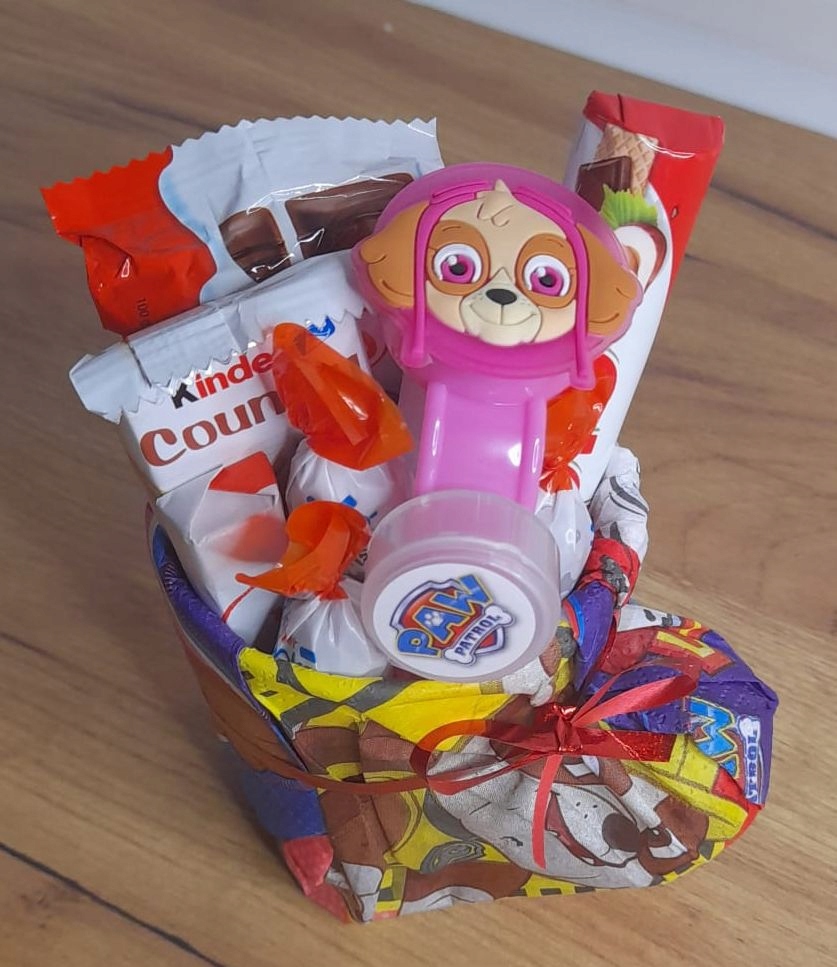 Набір солодощів для дитини. Дитячий кіндер. Подарунок на день народження. Взуття Щенячий патруль
