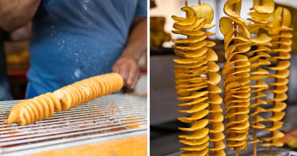 - Картофель, скрученный на палочке (спиральками).
