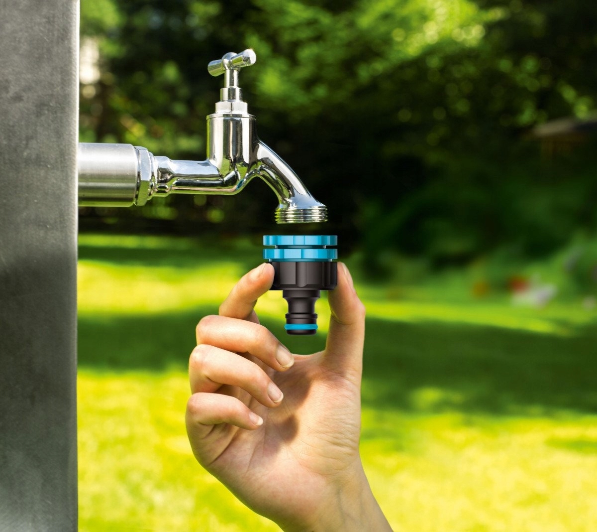Соединение имеет эргономичную форму, что позволяет быстро и удобно установить его в водозаборник. Подходит для кранов с резьбой: 1/2", G3/4" и G1". Изготовлен из АБС-пластика.
