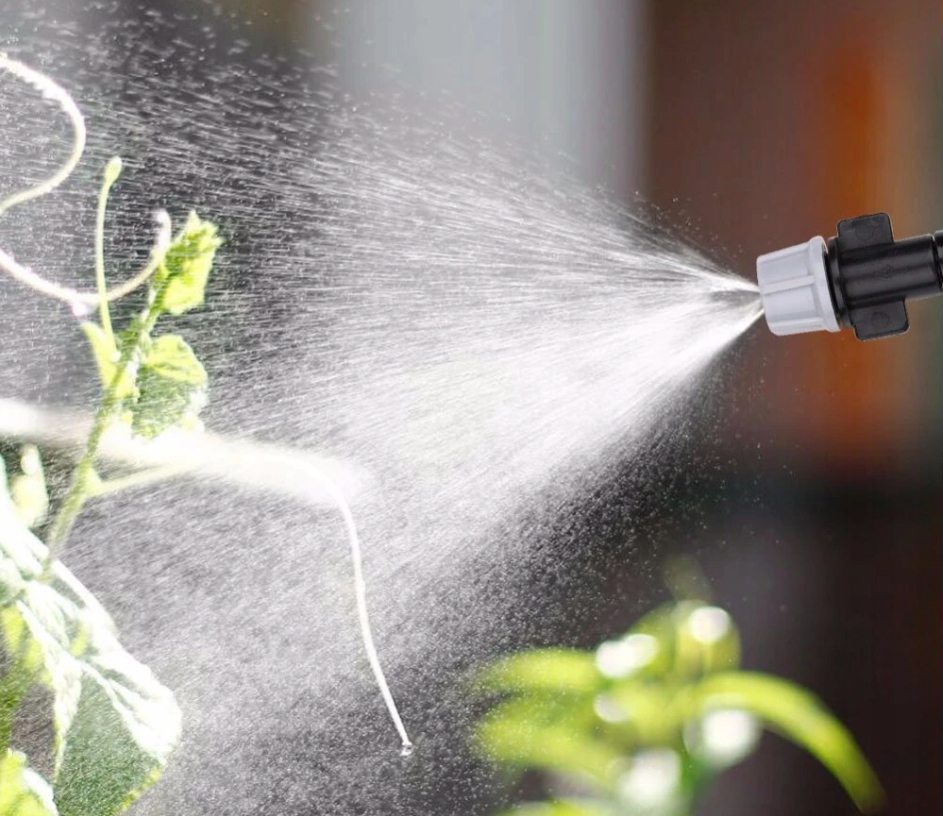 Вода из форсунокпросачивается медленно, благодаря чему наше расход воды будет небольшим, окружающая среда будетохлаждено, а растения получатадекватное увлажнение