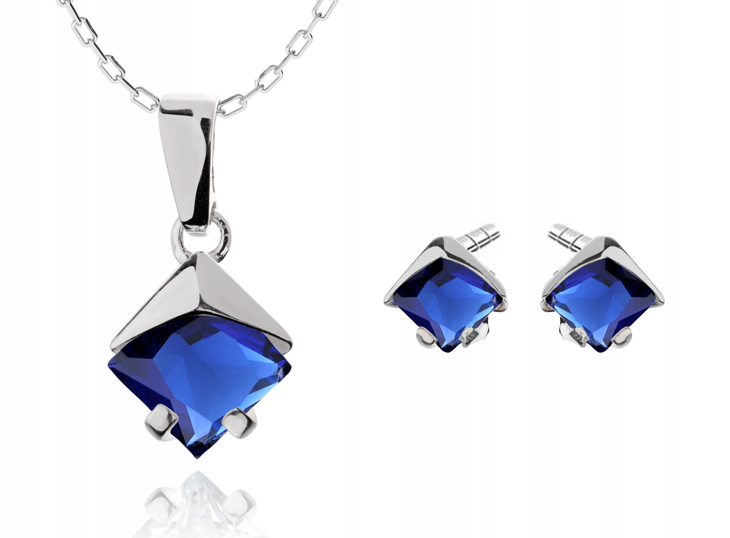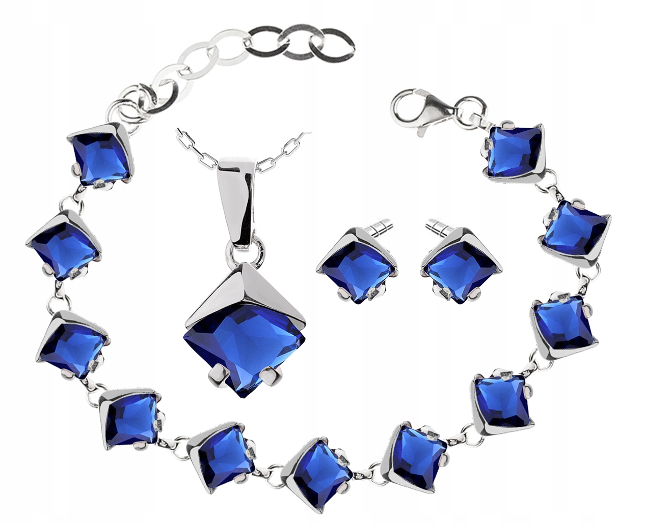 Предмет предложения - красивый комплект серебряных украшений с сапфирами (темно-синими) цирконами -