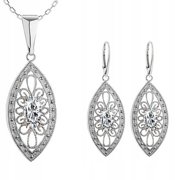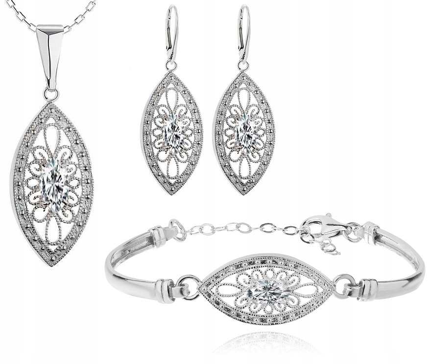 Предмет предложения - красивый, ажурный комплект серебряных украшений с фианитами -