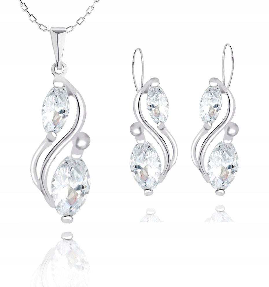 Предмет предложения - красивый комплект изящных серебряных украшений с белыми цирконами -