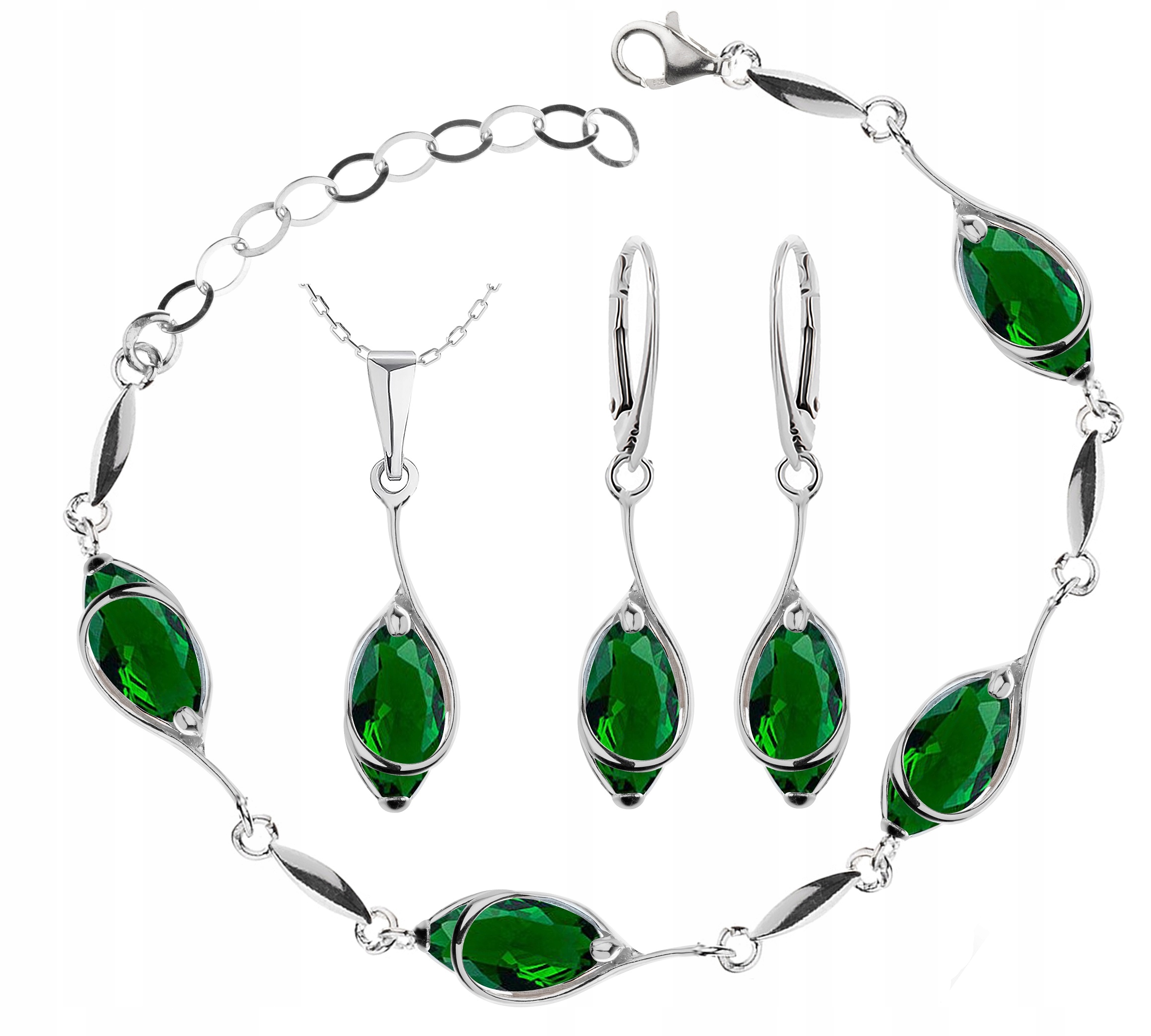 Предмет предложения - комплект красивых серебряных украшений с изумрудными (зелеными) цирконами -