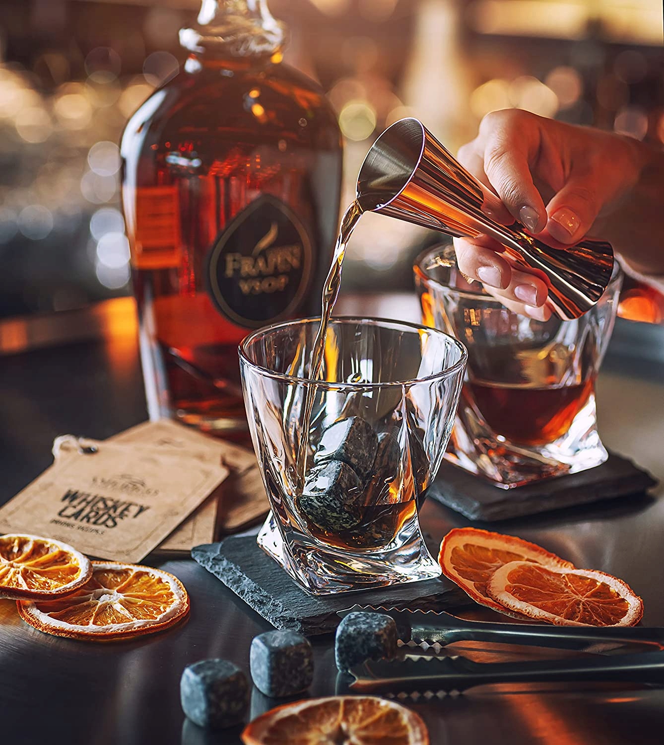 Эксклюзивные бокалы для виски - красивый хрустальный бокал для виски поможет усилить удовольствие от виски, скотча, бурбона, коктейля, джина, коньяка и других алкогольных напитков. В подарочный набор камней и бокалов для виски AMERIGO входят два впечатляющих бокала для виски. Этот оригинальный стеклянный корпус поможет вам легче распознать цвет алкоголя.
