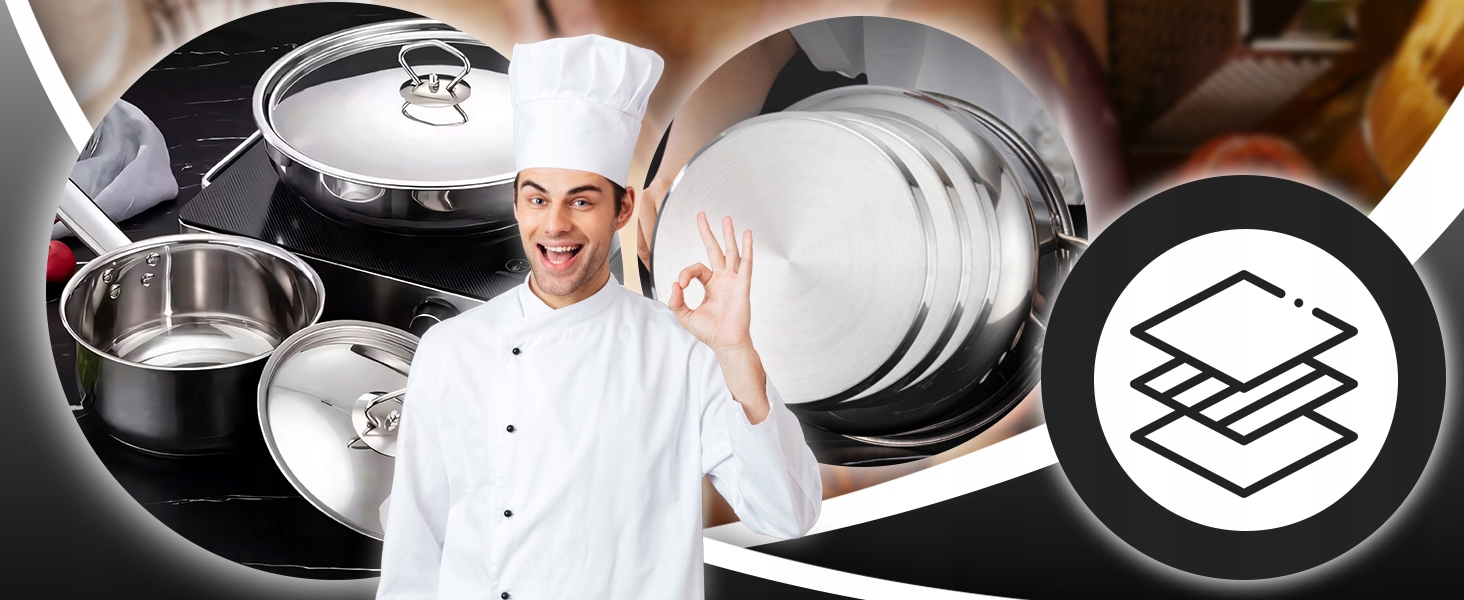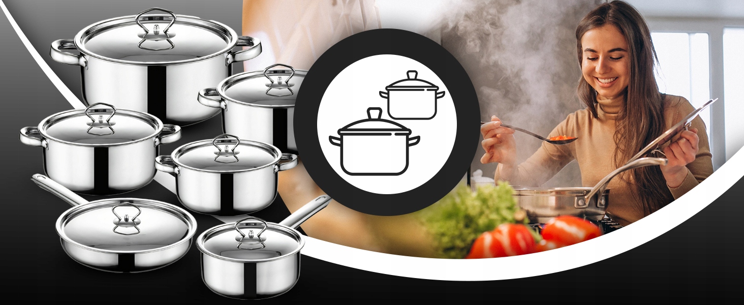 Благодаря высококачественной нержавеющей стали и кастрюлям и сковородкам различных размеров набор идеально подходит для повседневного приготовления пищи.